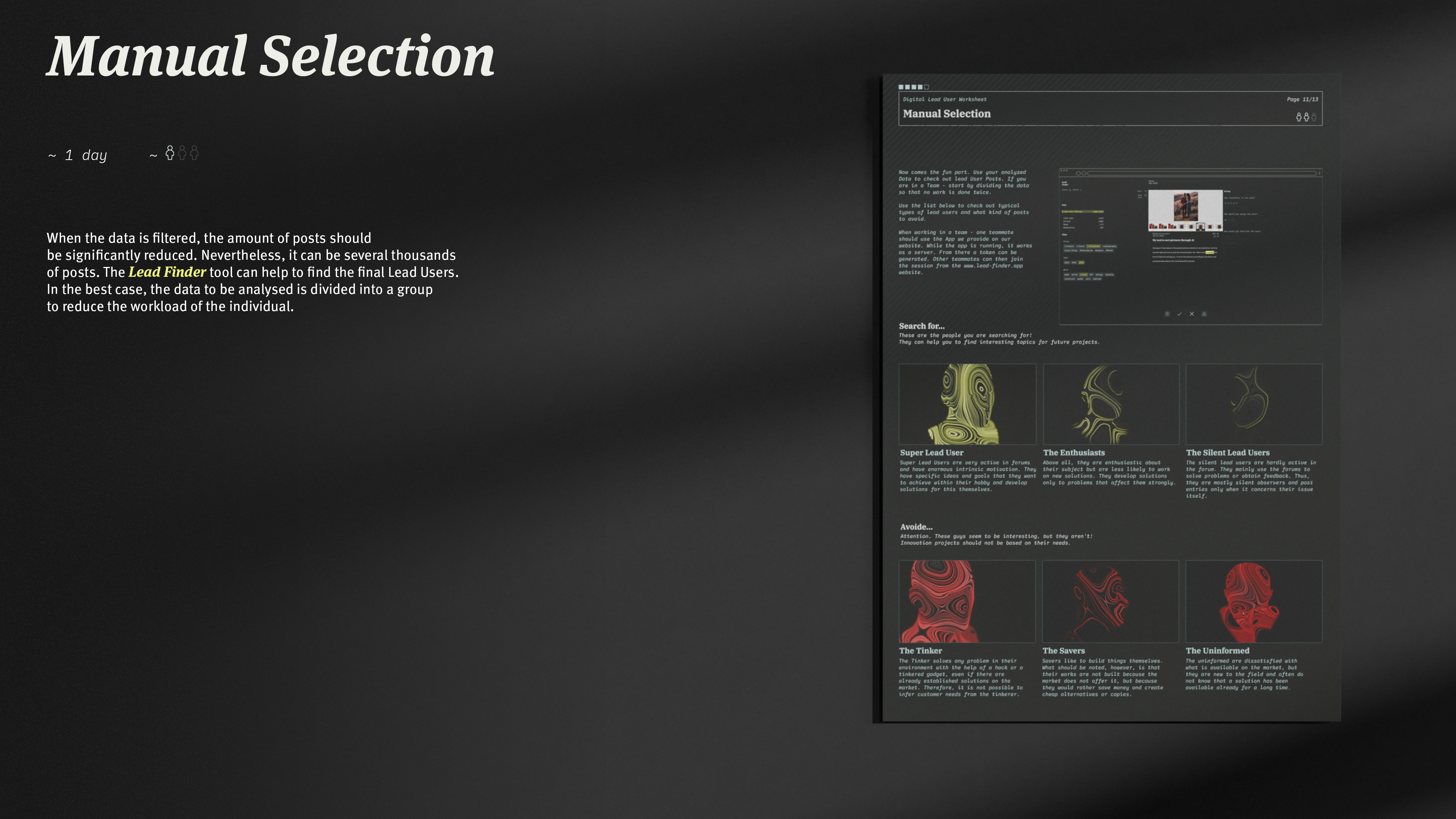 Anatomy of a Lead UserLead User Analysis Flow - Sheet 1 WorkshopLead User Analysis Flow - Sheet 2 SearchfieldLead User Analysis Flow - Sheet 3 Data AnalysisLead User Analysis Flow - Sheet 4 Manual SelectionLead User Analysis Flow - Tools