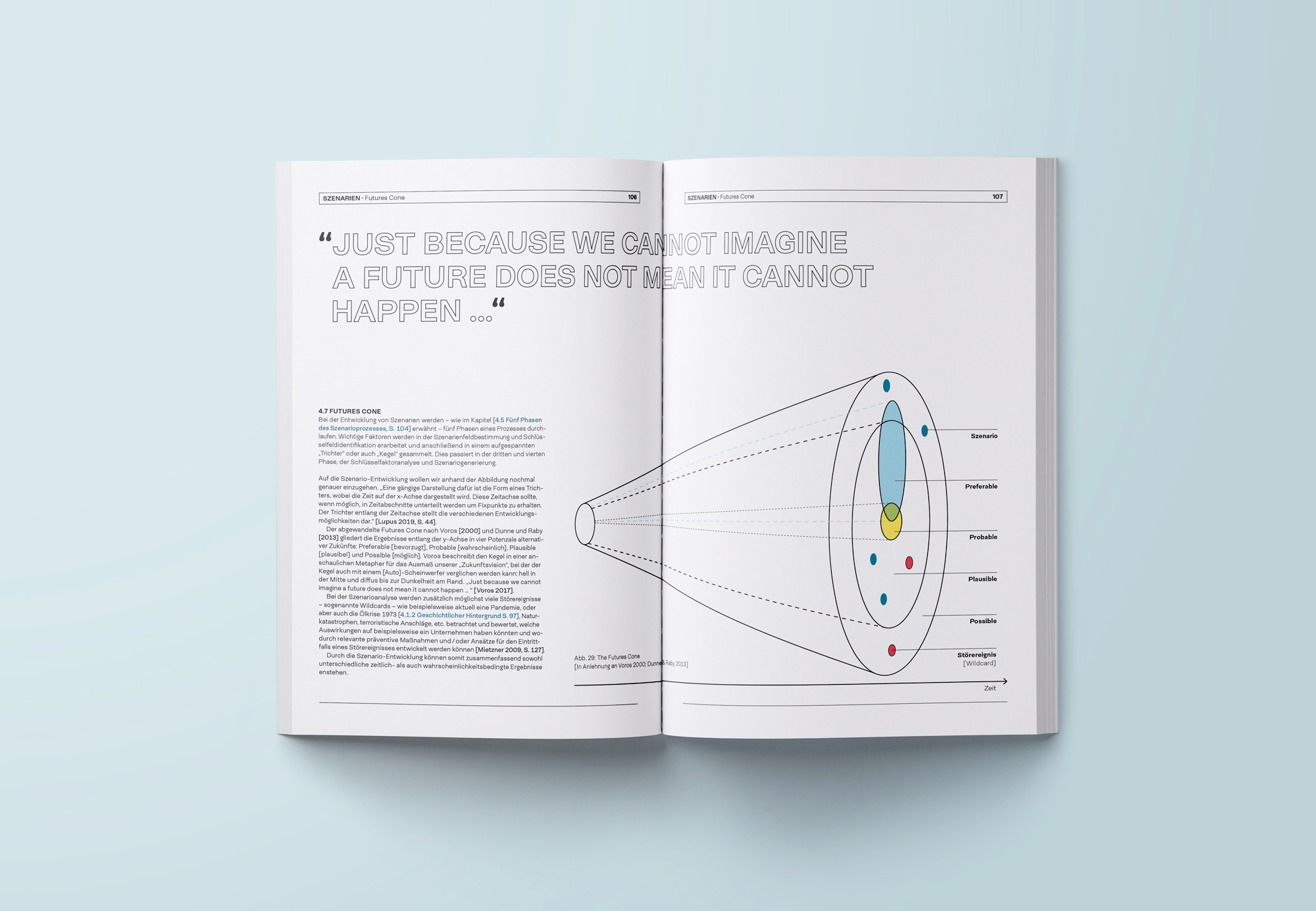 This collection and evaluation of information creates a common basis for communication between the different disciplines within the team. This can reveal valuable perspectives and potentials for subsequent phases. The broad perspective gained enables the participants to productively move on to scenario building in order to place the innovation impulses in a systematic context and to derive opportunity areas for the idea generation process. The insights can either be used as a suggestion for the development of ideas and concepts, or they can help to jointly consider future changes and to derive potentials and risks from them.