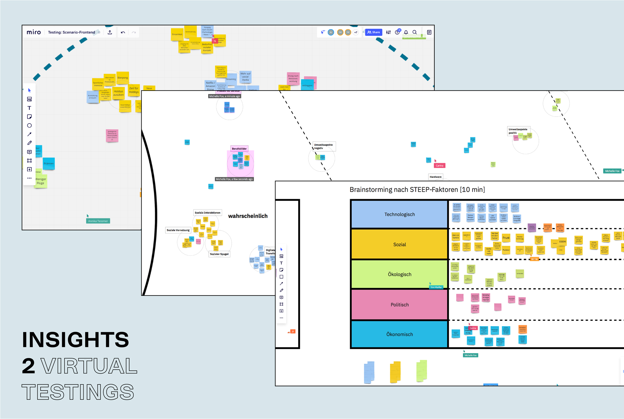 The goal of our work was to positively influence the communication and the resulting innovative ability in the company. By developing the workshop concept, we were able to draw attention to the problem areas and the complexity at the beginning of the innovation process and therefore to point out possible areas of action for strategic designers.