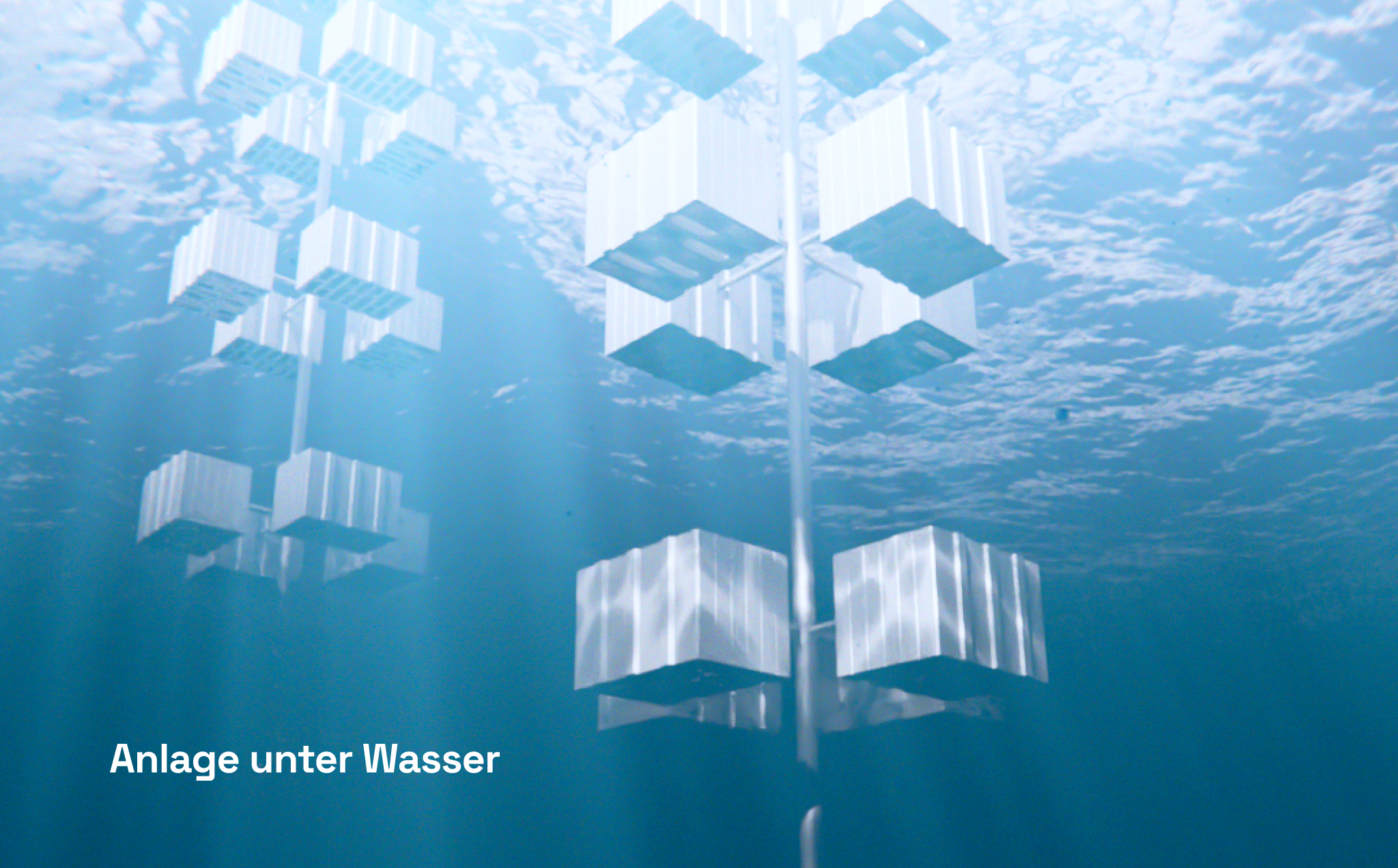 Unsere Produktion findet im Meer statt. Mit erneuerbarer Energie aus Offshore-Windparks betreiben wir Elektrolyse-Anlagen. Dabei entstehen nicht nur Sauerstoff und Wasserstoff – an der Kathode bildet sich auch ein Gestein, eine Bindung aus im Meerwasser gelösten Calcium-Ionen, Magnesium-Ionen und CO2.