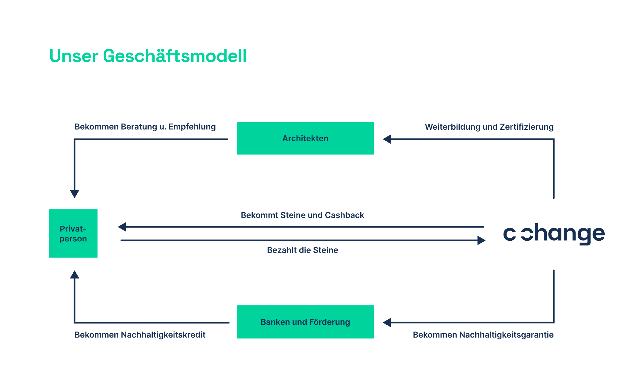 Weitere Akteur:innen sind zum Beispiel Banken und der Staat, die Privatpersonen mit (nachhaltigen) Bauvorhaben finanziell fördern. Ebenso bilden wir Architekten zum Thema klimafreundlicher Hausbau fort – welche dann unsere c-bricks an ihre Kund:innen empfehlen können.