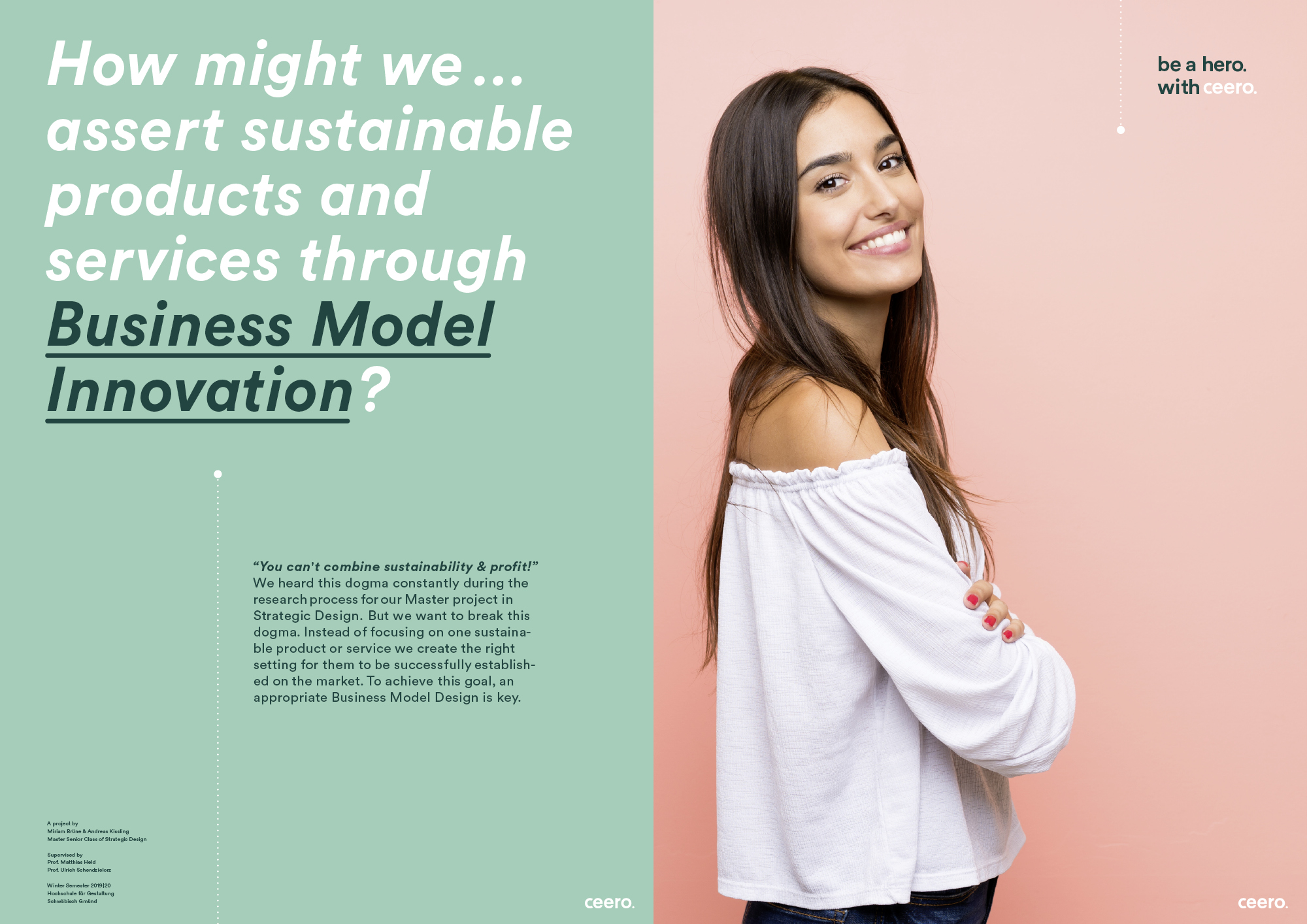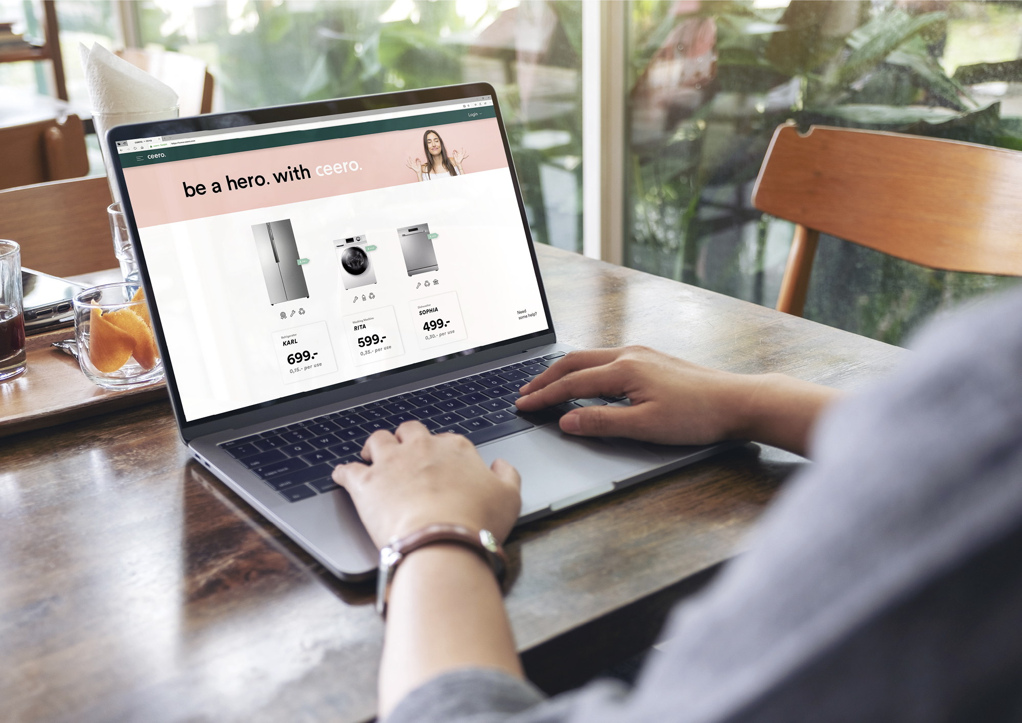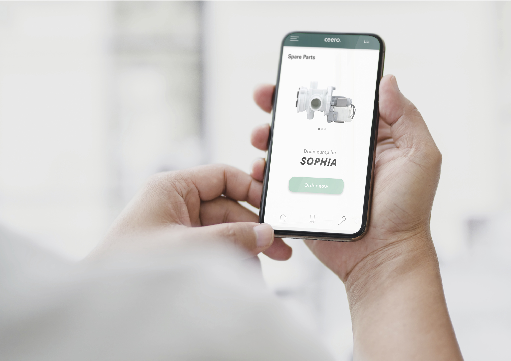 To communicate the business model appropriately, we developed the fictitious startup ceero. It specialises in the rental of large household appliances. The revenue generated will be used to produce radically redesigned equipment based on the principles of the Circular Economy. Our products are designed for easy disassembly and remanufacturing to give them a second or even third life. Whilst ceero. takes full liability for any repairs, the company‘s products are designed to facilitate self repair in case of a defect. The lifetime of the products increases significantly and the user is 'nudged' to act more sustainable through the business model. Built-in sensor technology and the IoT makes it possible to identify defects quickly. Instead of planned obsolescence, repairability and longevity are the key factors for ceero.‘s longterm success.