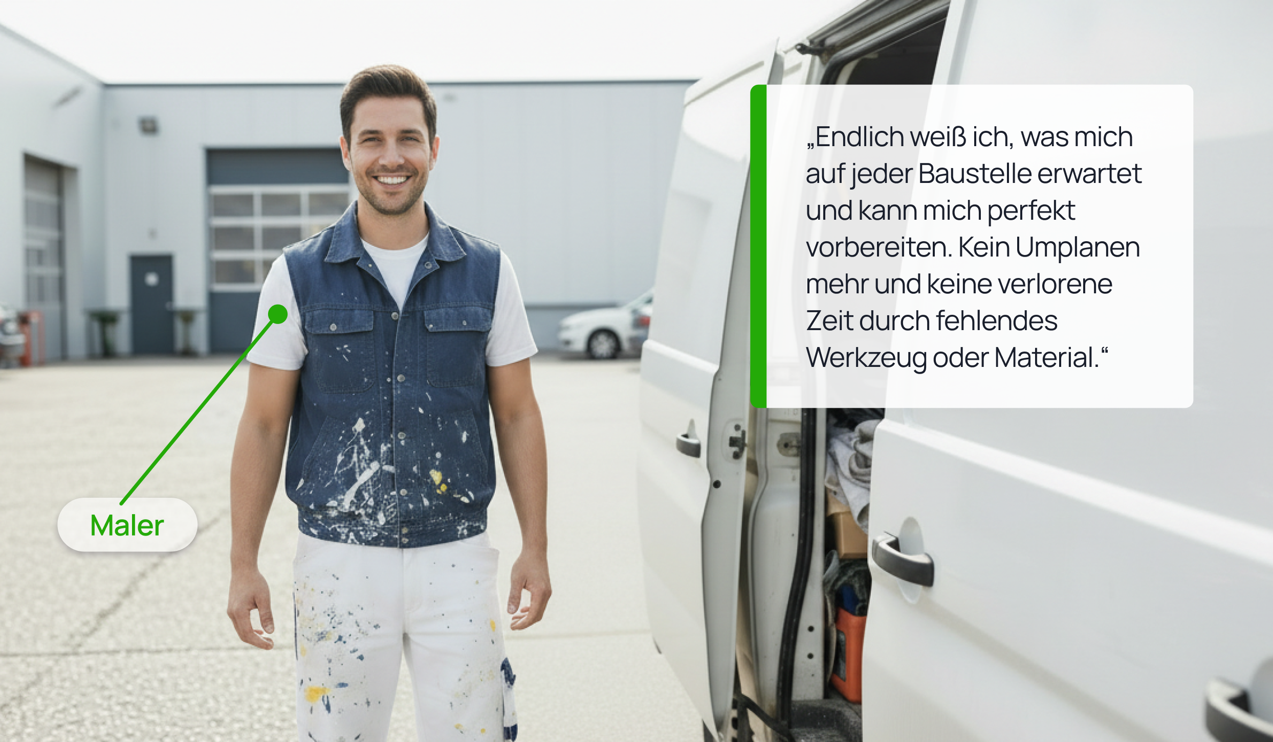Das Ergebnis sind ungenaue Planungen, fehlendes oder falsches Material, unnötige Nachlieferungen und zusätzliche Fahrten. Dies verursacht Zeitverzögerungen, höhere Kosten und einen vermeidbaren Anstieg von CO₂-Emissionen.