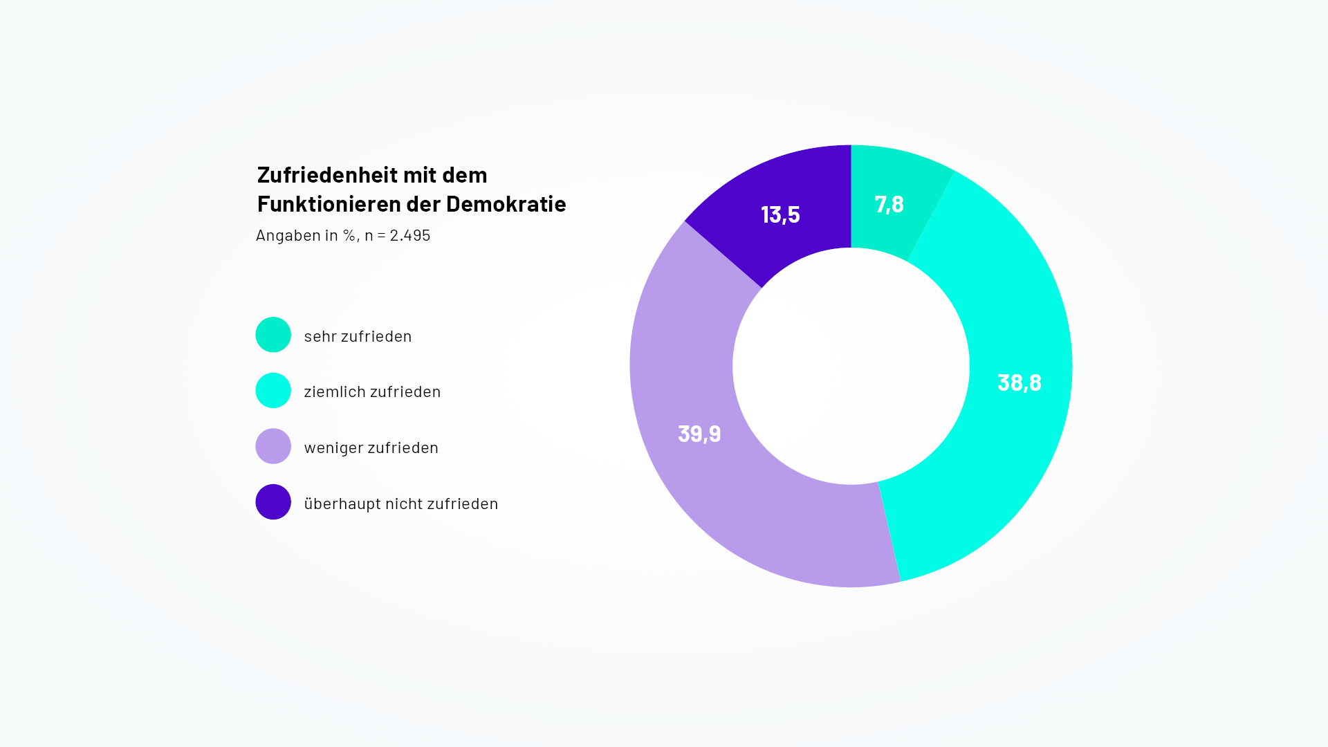 Nur etwa die Hälfte der Deutschen ist mit dem Funktionieren der Demokratie zufrieden. Das Erstarken des Rechtspopulismus und das Aufflammen von immer mehr Verschwörungstheorien sind nur zwei der Symptome der Vertrauenskrise. Dieses Vertrauen gilt es wieder aufzubauen, um unsere Demokratie nicht zu gefährden.