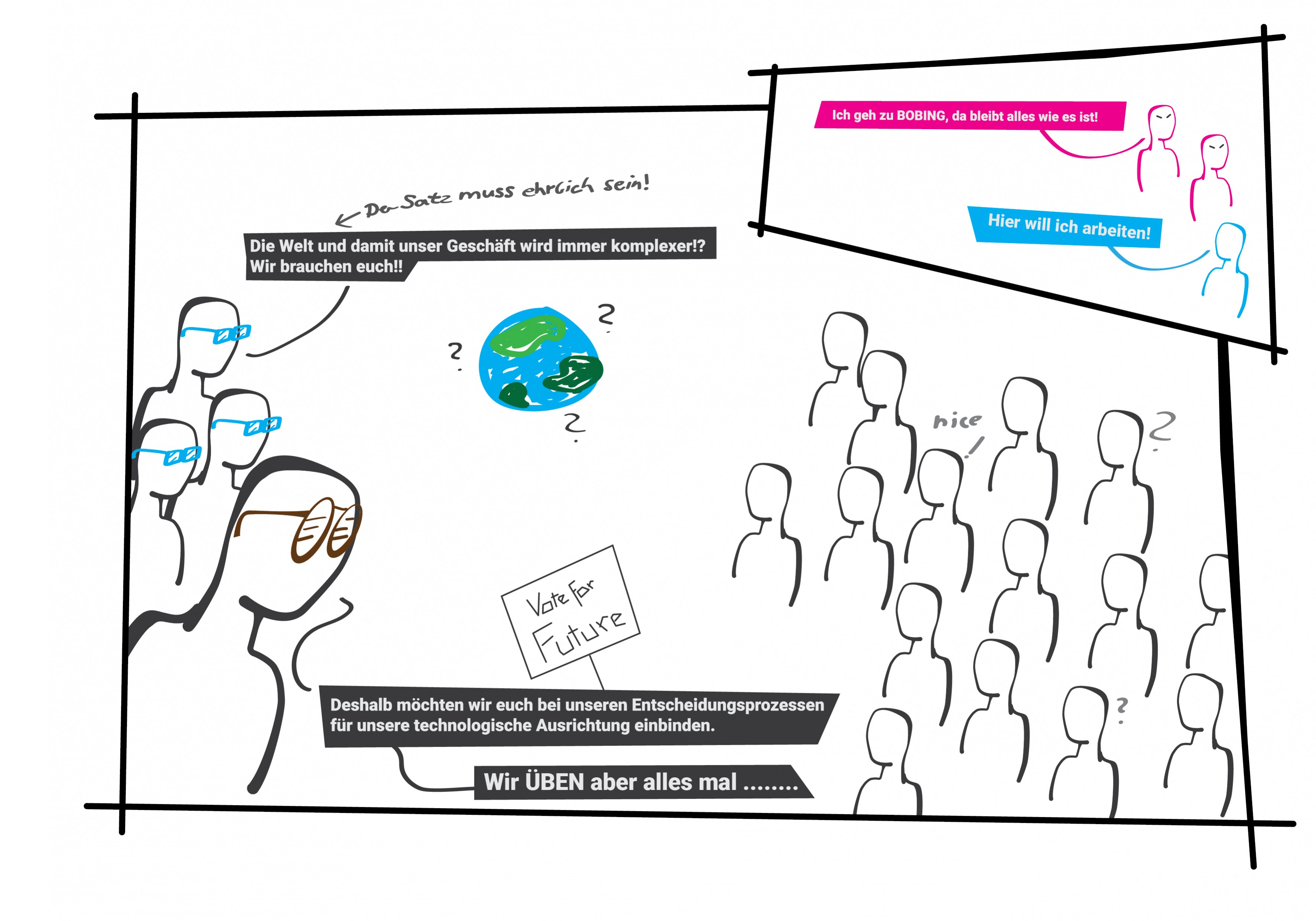 Demokratische Prozesse in Unternehmen, umgesetzt als Storyboard