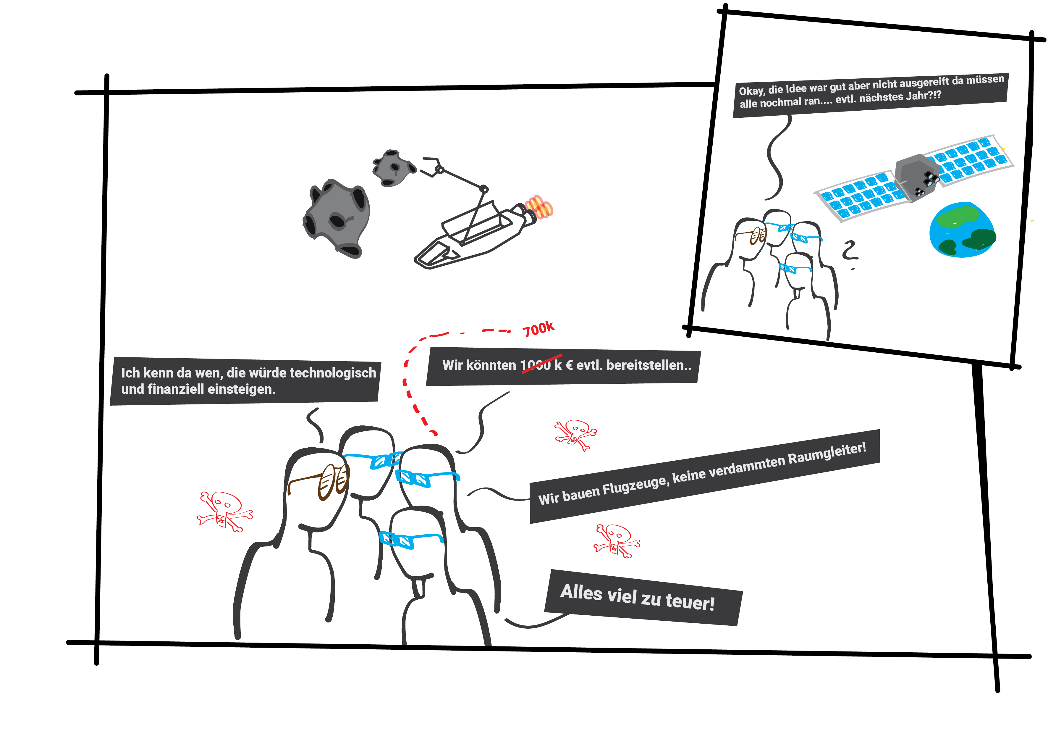 Ziel des Diskurses ist es erneut keine Idee kategorisch zu verwerfen. Viel mehr soll in dieser Phase eine für alle Parteien zufriedenstellend Lösung erarbeitet werden. Kann eine Idee nicht umgesetzt werden (beispielsweise aus Kapazitäts- oder Budgetgründen), so könnten die Ideengründer für einen kurzen Zeitraum freigestellt werden, um einen alternativen Lösungsweg zu ermitteln, oder die Idee zum Thema des nächsten “Day of Innovation” werden. – Der Umgang liegt im Ermessen des Unternehmens. Wir empfehlen jedoch einen offenen Austausch über schwer umsetzbare Ideen, sodass auch an dieser Stelle Mitarbeiter:innen in ihrem Gefühl von Teilhabe und ehrlichem Interesse an Innovation bestärkt werden.