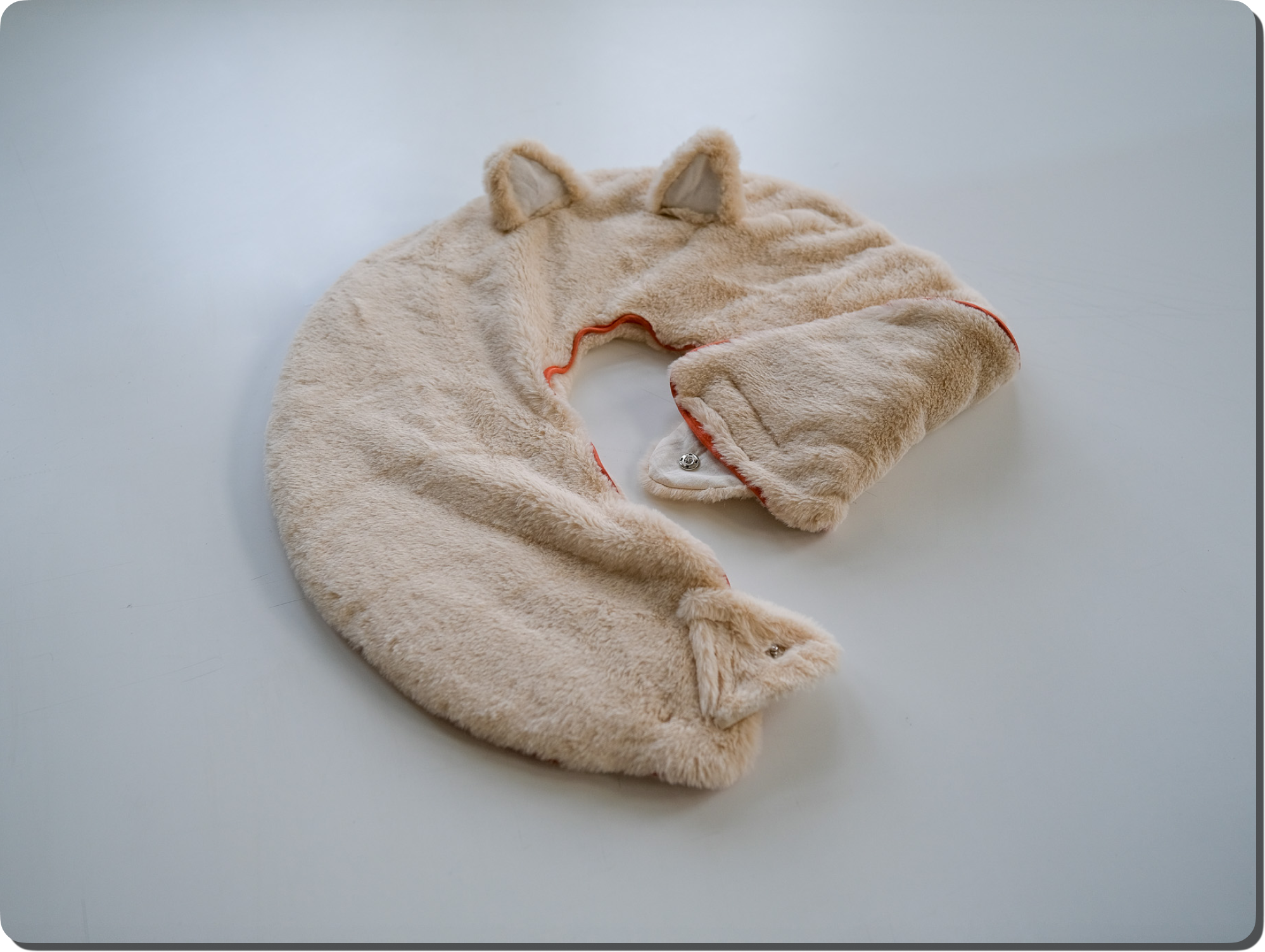 The second part of the strategy is a weighted, wearable product in the form of a shoulder garment. It is made from a soft material, surrounds the user's shoulders and gives the sensation of being hugged. Through the weight, it actively supports a connection to the body and can help feeling grounded when in emotional distress.