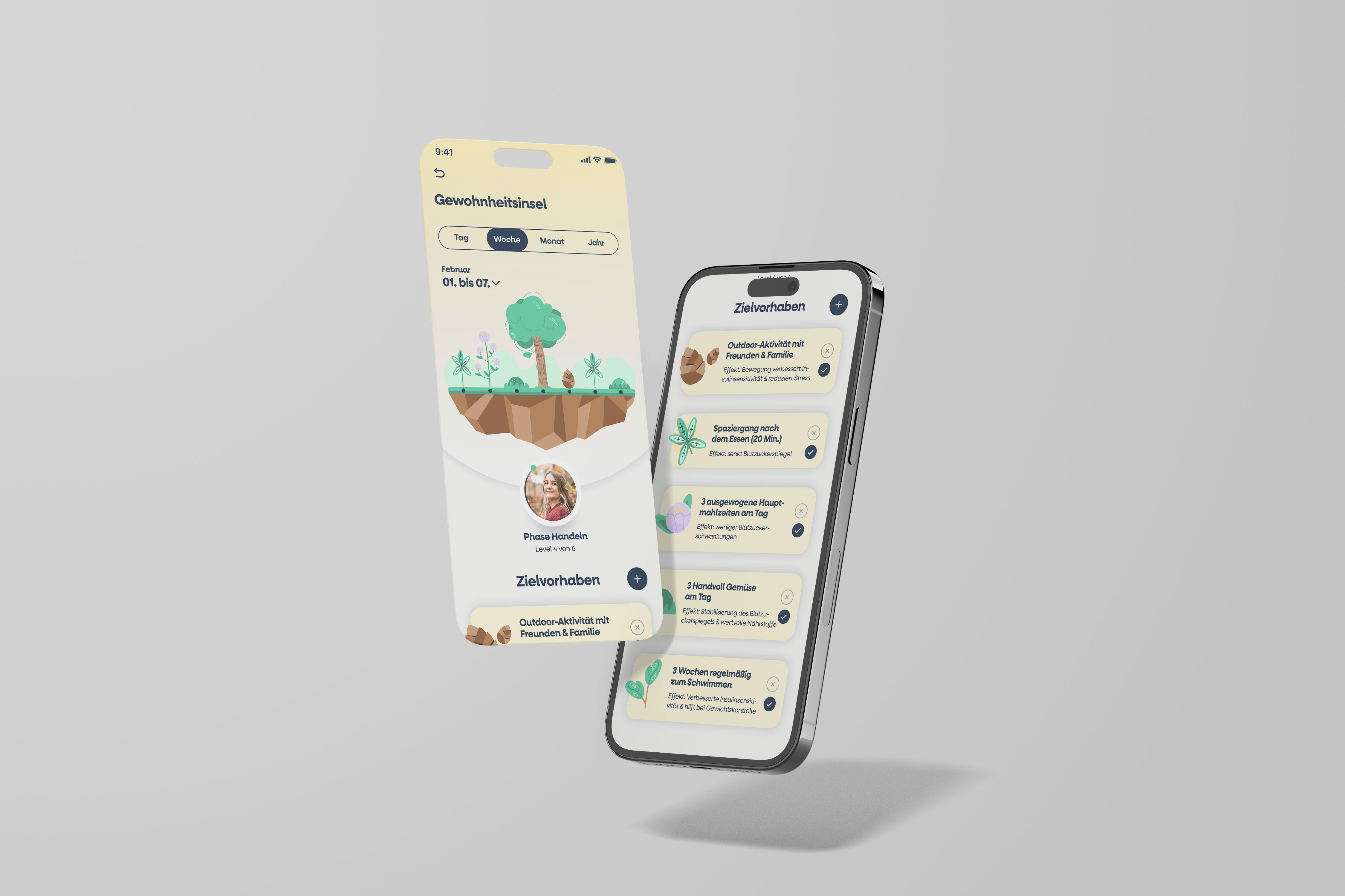 Um diesen spezifischen Herausforderungen zu begegnen, wurden das Biophilic Design und ein Gamification-Ansatz für das Designkonzept herangezogen.