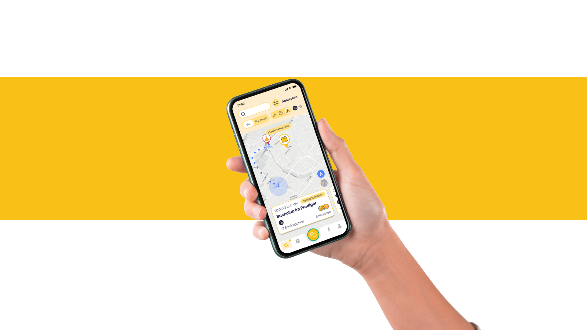 Entdecken: Nutzer können eigenständig nach Aktivitäten oder Services in ihrer Nähe suchen oder filtern.