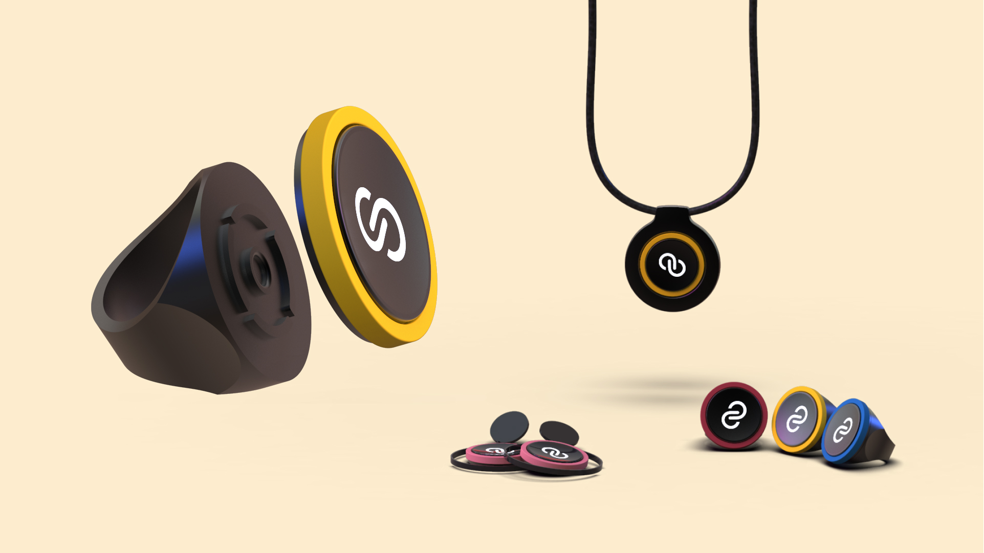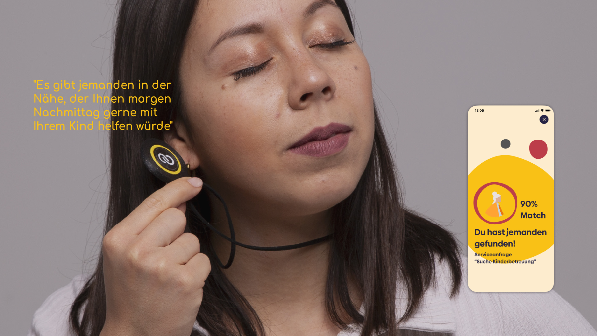 Der vierte Teil von GenerAktion ist der Chip. Um das Nutzererlebnis für Senioren weiter zu optimieren, haben wir die Funktionen der App reduziert und abgekoppelt, um das Konzept des Chips zu entwickeln. Der Chip kann als das analoge Gegenstück der App betrachtet werden. Sein Hauptzweck besteht darin, Nutzern schnell Vorschläge und Informationen zu liefern oder Sprachbefehle entgegenzunehmen. Er ist modular aufgebaut und kann auf verschiedensten Accessoires angebracht werden, z. B. auf Ringen, Ohrringen, Halsketten, Armbanduhren oder Broschen.