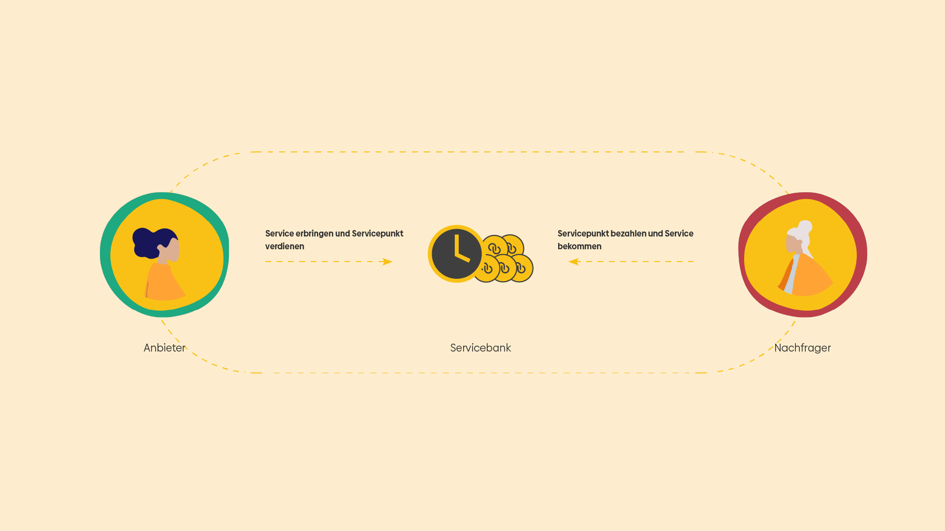 5. Servicebank: Die Servicebank ist ein theoretisches Modell für den Austausch von Services zwischen den Teilnehmern.