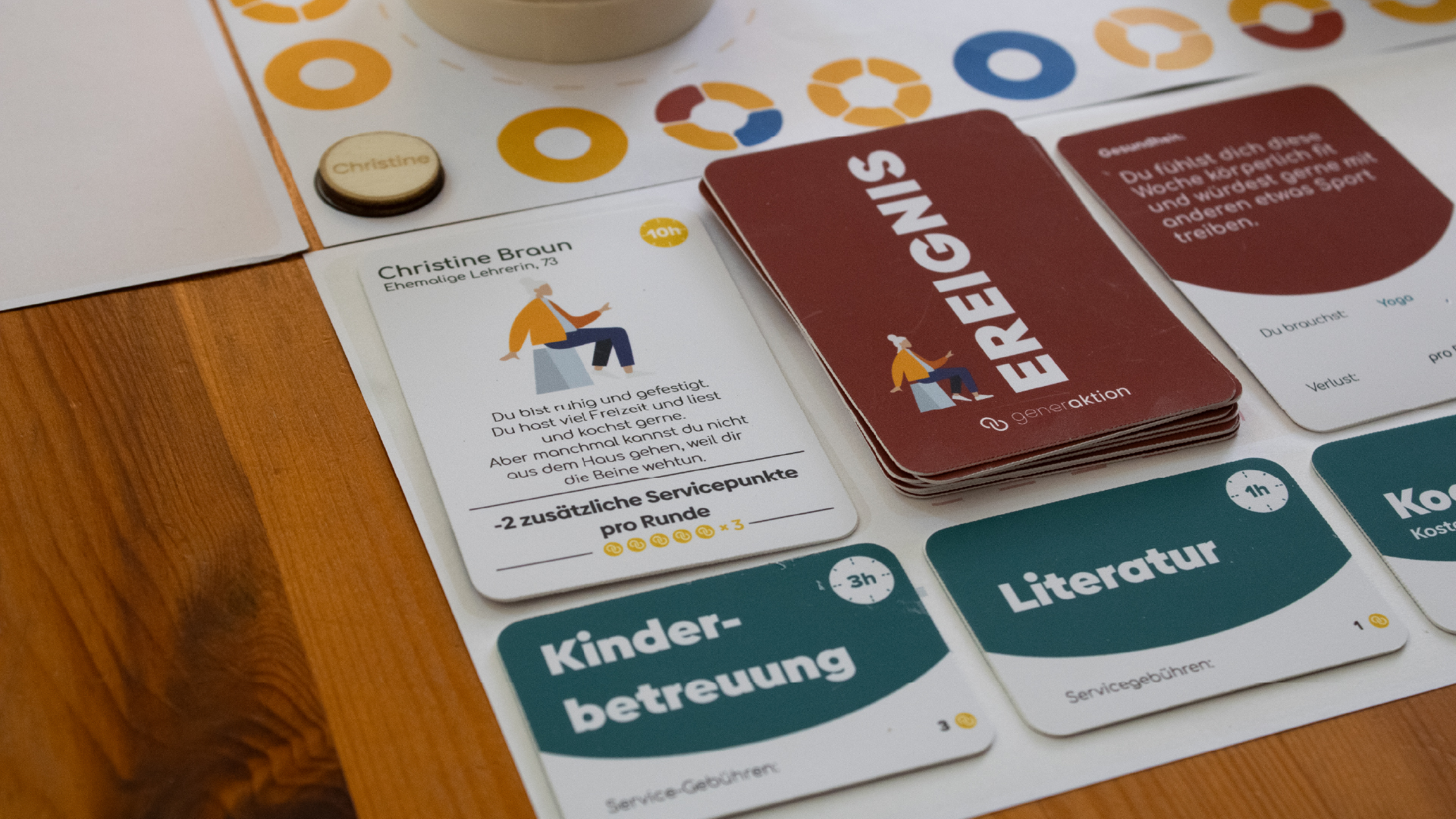 Jeder Teilnehmer hat eine eigene Figurenkarte mit besonderen Merkmalen, Interessen, Bedürfnissen und unvorhergesehenen Ereignissen. Im Laufe des Spiels lernen die Menschen nach und nach die unterschiedlichen Perspektiven der verschiedenen Generationen kennen.