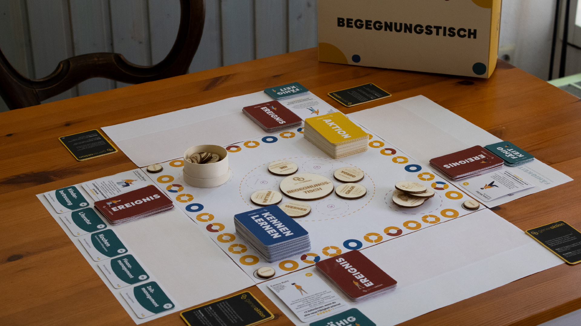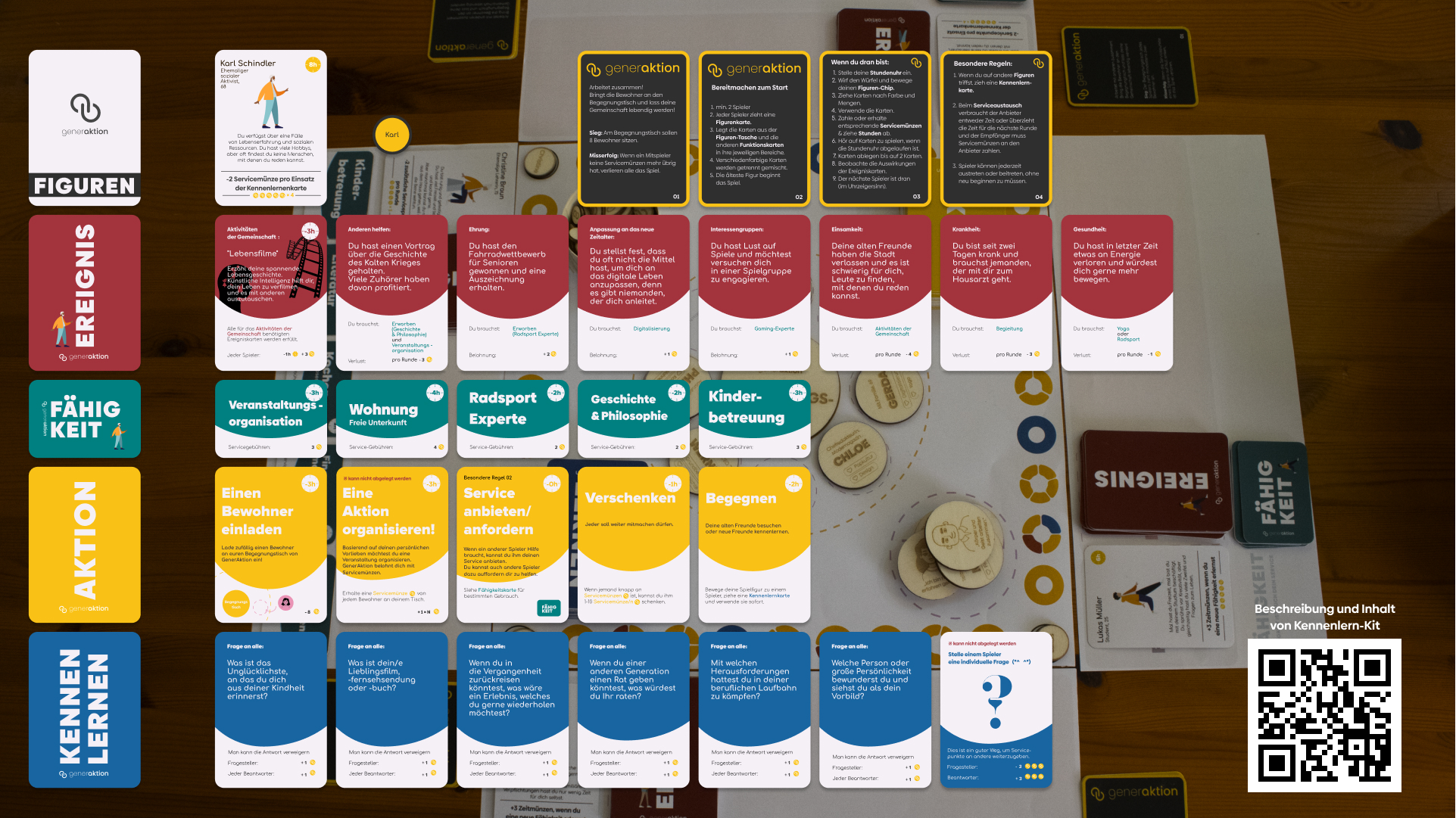 Die Kennenlernkarten ermöglichen es ihnen, die anderen Teilnehmer besser kennenzulernen. Mit den Aktionskarten helfen sie sich gegenseitig und lernen dabei GenerAktion näher kennen.