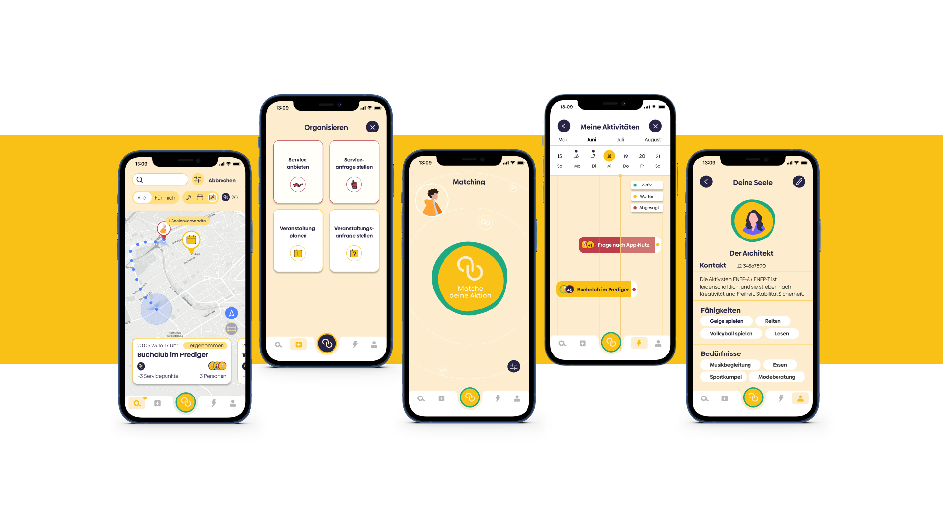 3. App: Die App fungiert als Informationsplattform, die es den Teilnehmern ermöglicht, basierend auf ihren Bedürfnissen an Aktivitäten teilzunehmen und Hobbygruppen zu gründen, sowie den Austausch von Services zu ermöglichen.