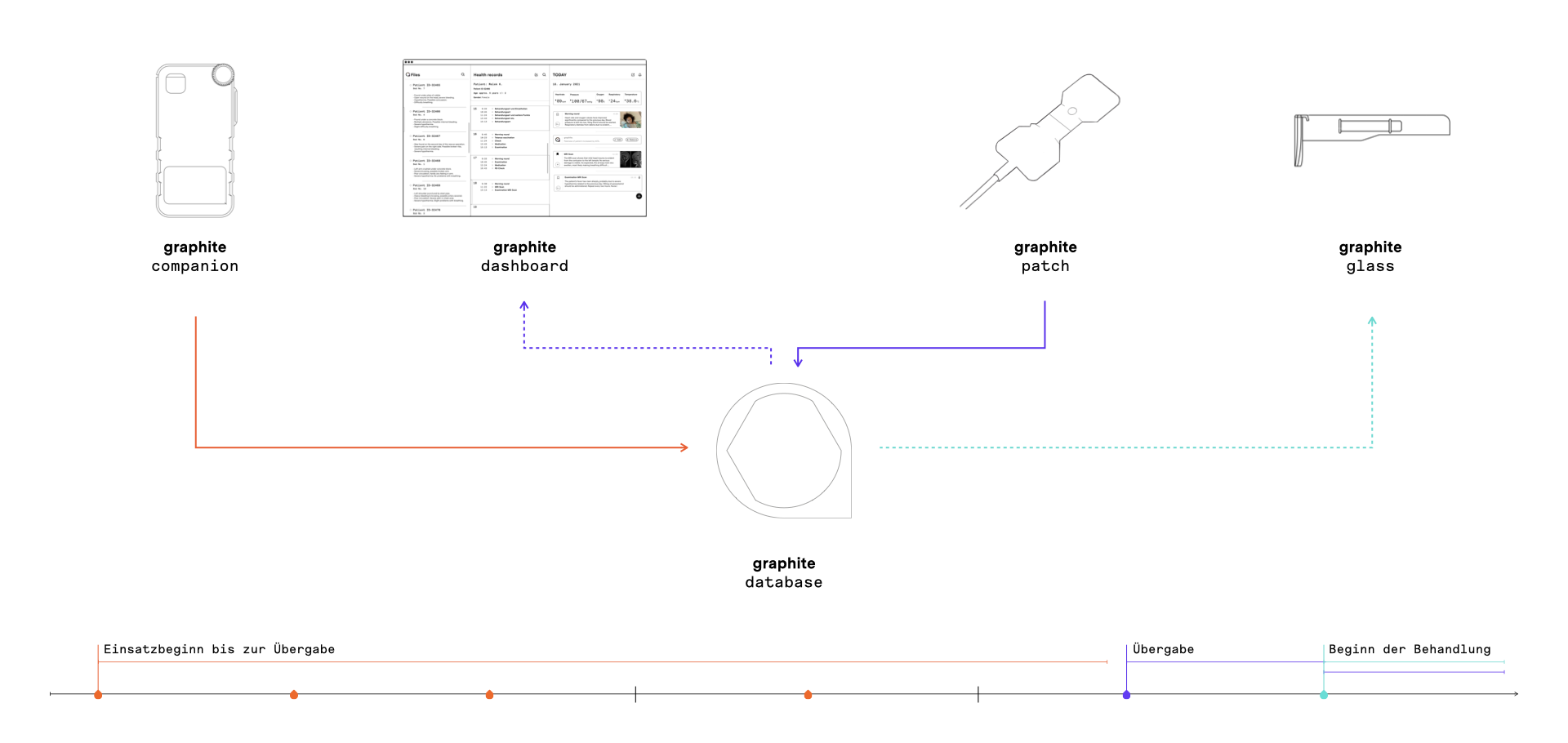 graphite. creates a seamless connection between the different stakeholders. It connects the helpers in the field to the medical workers in the hospital via the graphite. databank.