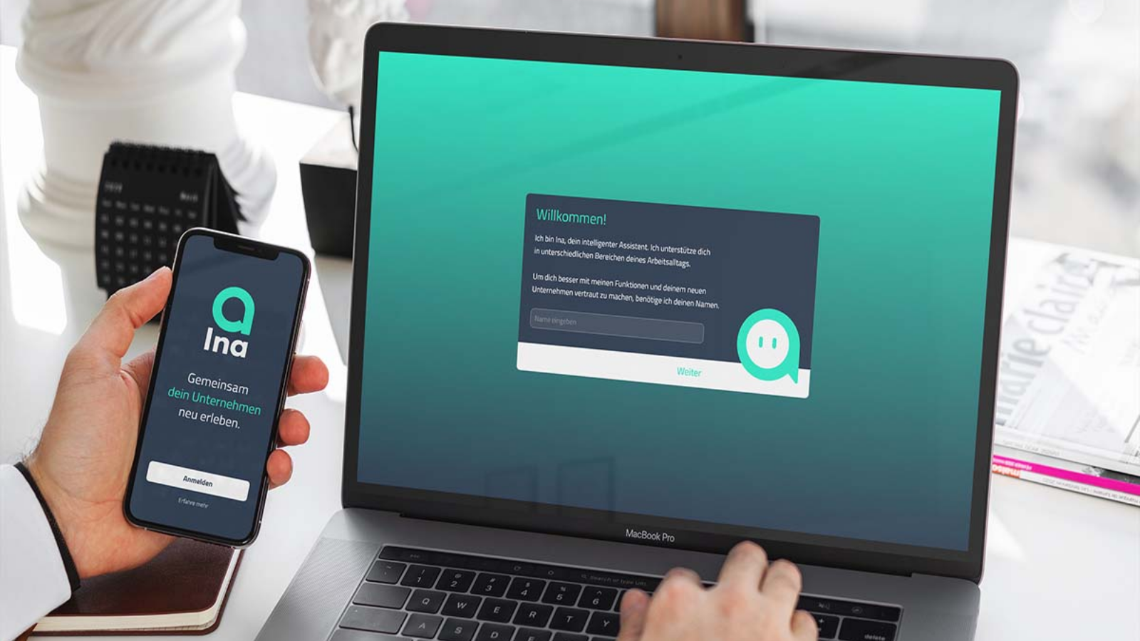 Ina is an artificial intelligence that takes over small coordinative tasks in everyday work, improves communications and agreements within the company and helps to maintain the corporate culture. By preserving traditional corporate cultures of presence and digital innovations, Ina bridges these two worlds to create a sustainable employee experience.