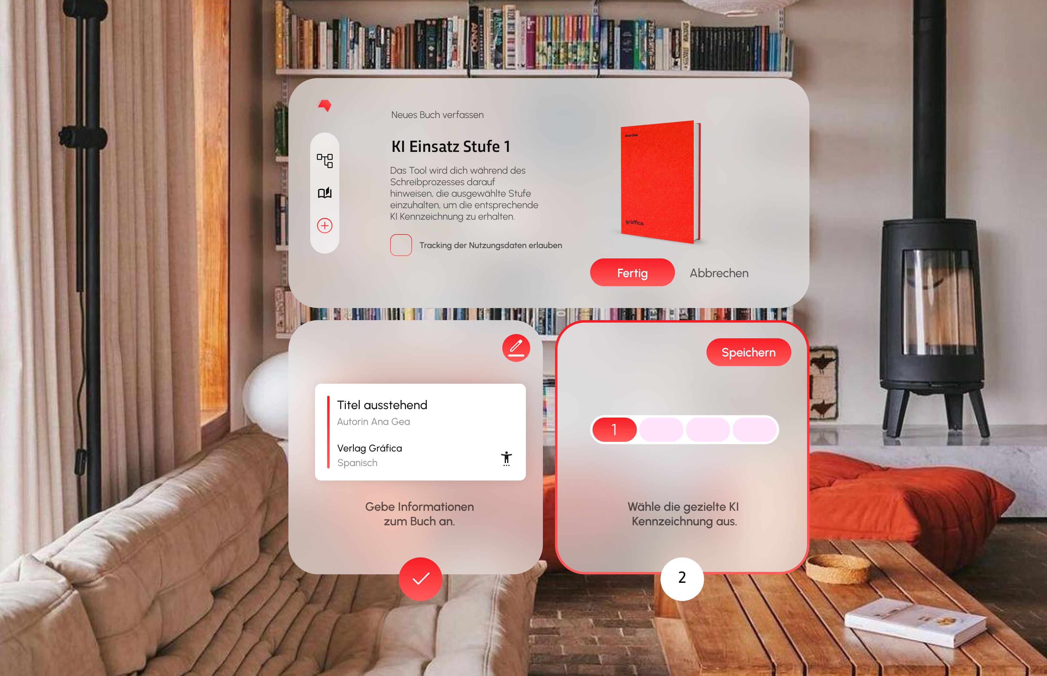 Die KI wird durch das Audit-Tool der Nutzerinnen, wie Autorinnen, nachgewiesen. Es basiert auf der Revision des AI Acts von 2027, die eine Standardisierung der Metadaten und Textanalyse vorschreibt. Diese Metadaten werden in den Phasen Recherche, Ideenfindung, Verfassen, Überprüfung, Gestaltung und Übersetzung getrackt. Die Autoren, Autorinnen und die andere Beteiligten stellen am Anfang ein, wie viel KI sie verwenden möchte. Zwischendurch gibt es Prüfungen, und sie kann das Buch direkt an den Verlag senden, wo automatisch ein Label generiert wird.