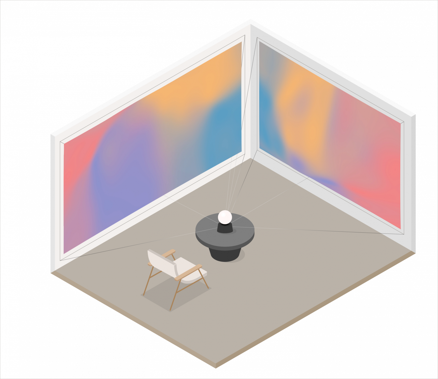 Weil die 360-Grad-Projektoren eine hohe Bildqualität, Auflösung und Helligkeit besitzen, muss der Raum nicht frei von Möbelstücken sein. Ganz im Gegenteil verleihen die Möbel nämlich der Projektion mehr Tiefe. Angedacht ist nämlich bereits in der zweiten Version des Produktes, dass verbaute LiDarScanner räumliche Tiefeninformationen erfassen. Mit diesen Informationen weiß Juri wo sich Möbel im Raum befinden und lässt die Animationen an Orten der Möbelstücke anderes reagieren. Das Erscheinungsbild änderst sich beispielsweise an den Rändern der Möbelstücke und könnte es umfließen oder Ähnliches.