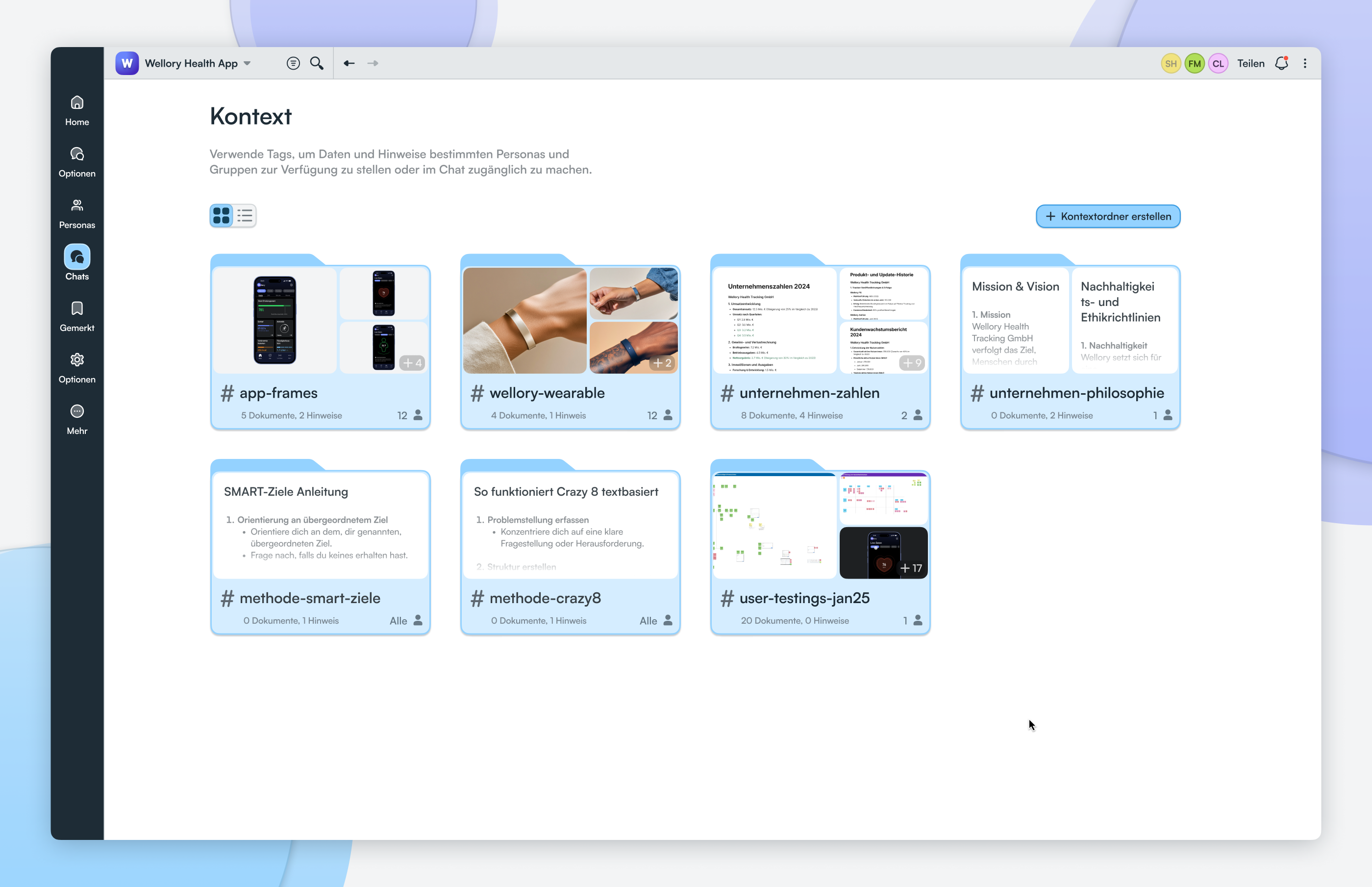 Kontextordner: Diese Funktion ermöglicht es, den Personas häufig benötigte bestehende Daten zur Verfügung zu zu stellen