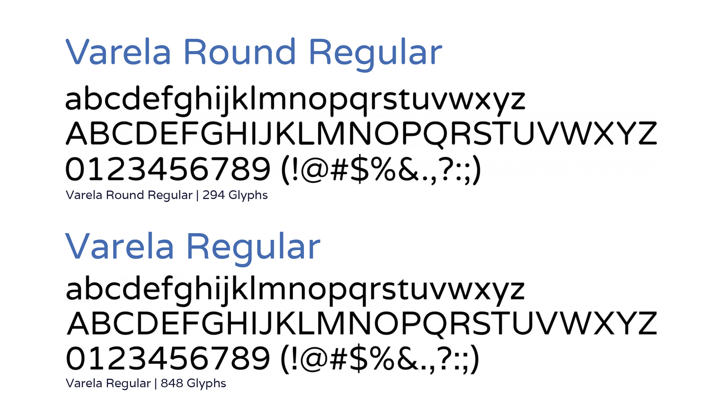 ⬑ Wir entschieden uns bewusst für eine Kombination aus zwei Google-Fonts. Google Fonts können im digitalen Medium, beispielsweise für Webseiten, problemlos eingesetzt werden. Die Fonts werden von Google gehostet und werden allen Nutzer:innen, in Echtzeit angezeigt. Die Überschriften und Auszeichnungstexte werden mit dem Schriftschnitt "Varela Round Regular" dargestellt. Für den Fließtext verwenden wir "Varela Regular".