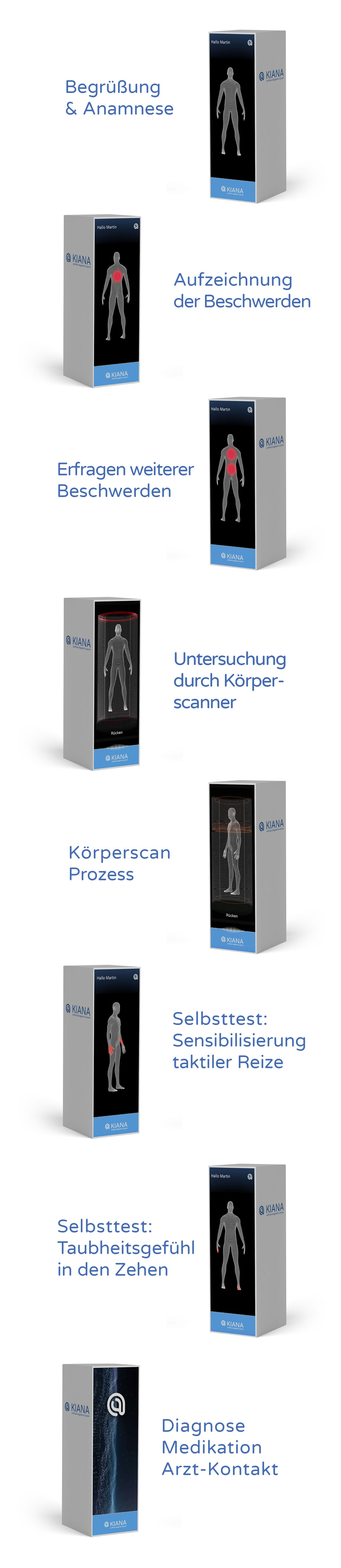 Wir beschäftigen uns mit der Zukunft des Gesundheitssystems und gehen der Frage nach möglichen Zukünften auf die Spur, indem wir sie mithilfe unseres artificial diagnostic system KIANA heute schon erlebbar machen.