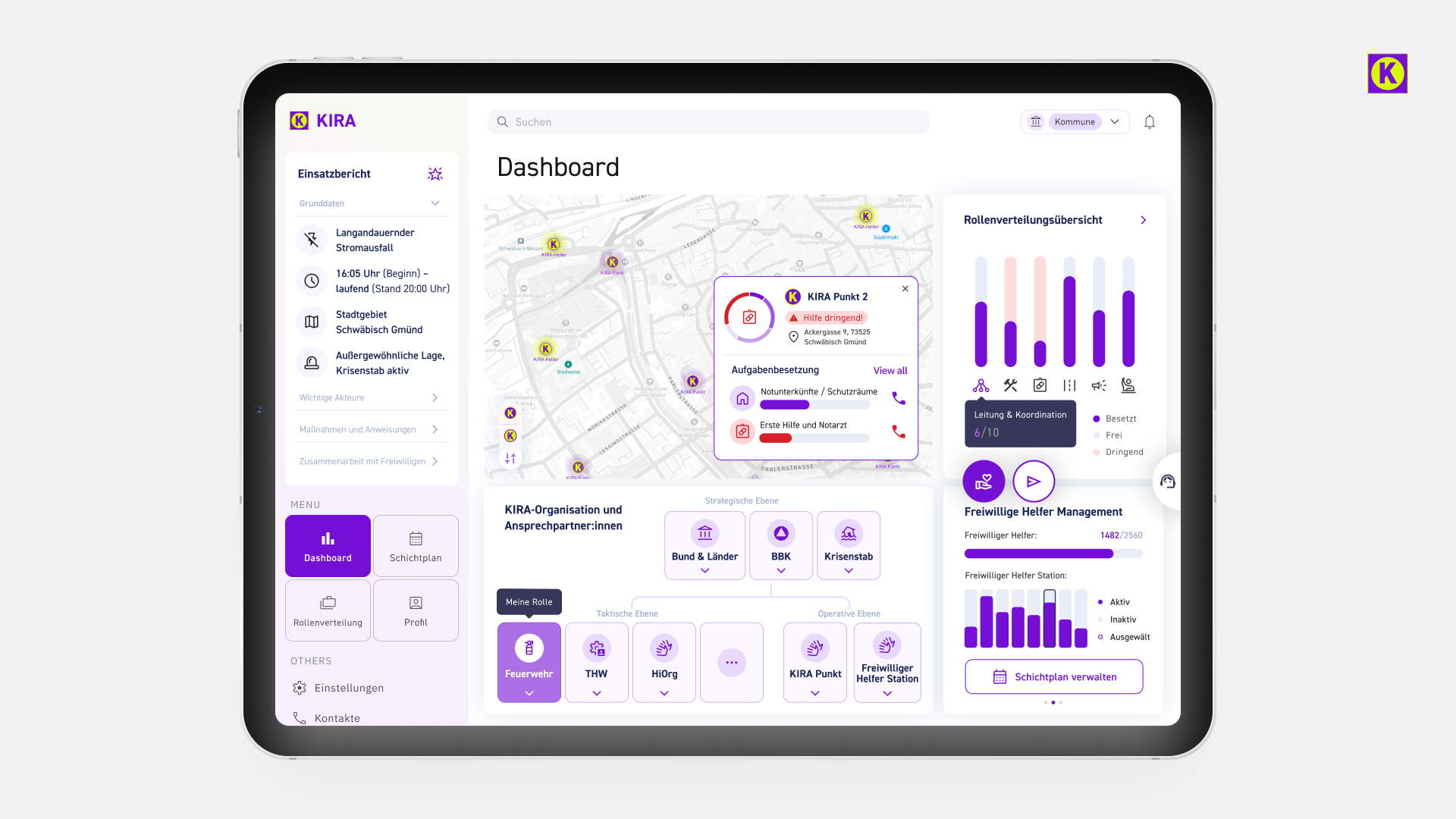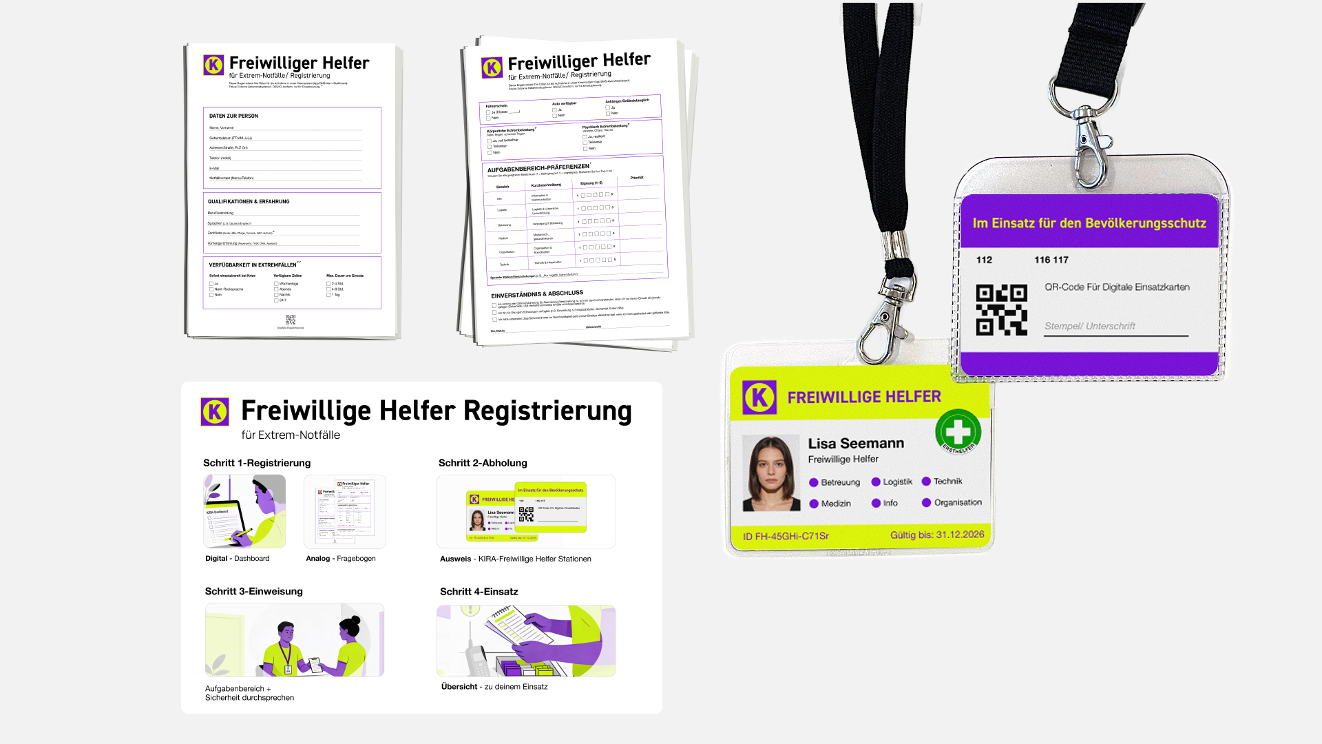 Ergänzend sorgen analoge und digitale Registrierungsprozesse sowie Ausweise für Fachkräfte und Helferinnen und Helfer für klare Abläufe und verlässliche Einsatzstrukturen. Nach der KIRA-Formel wäre eine aktive Beteiligung von rund jeder 25. Person ausreichend, um eine stabile Helferbasis aufzubauen und die gesellschaftliche Resilienz spürbar zu erhöhen.
