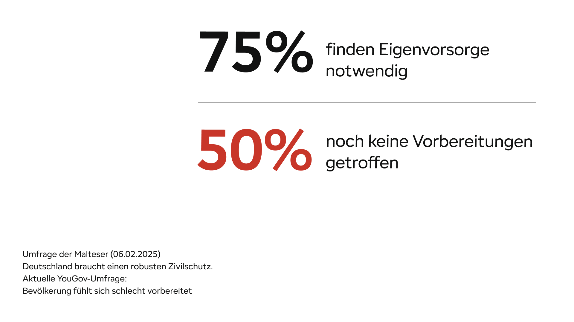 Das Bundesamt für Bevölkerungsschutz und Katastrophenhilfe (BBK) empfiehlt, dass sich alle Haushalte für bis zu zehn Tage selbst versorgen können. Dazu gehören ausreichend Wasser, Lebensmittel, medizinische Versorgung sowie Hygieneartikel.