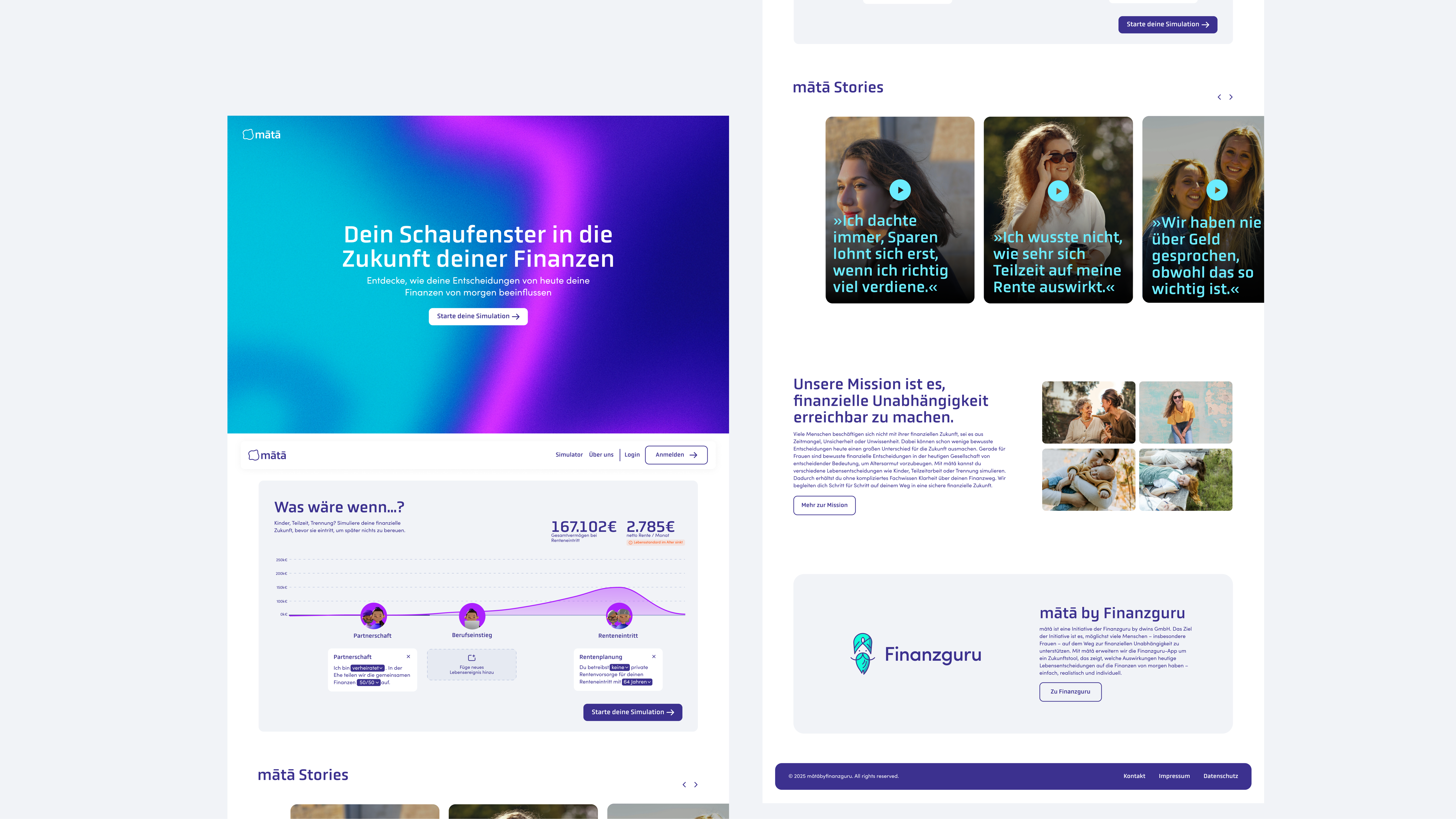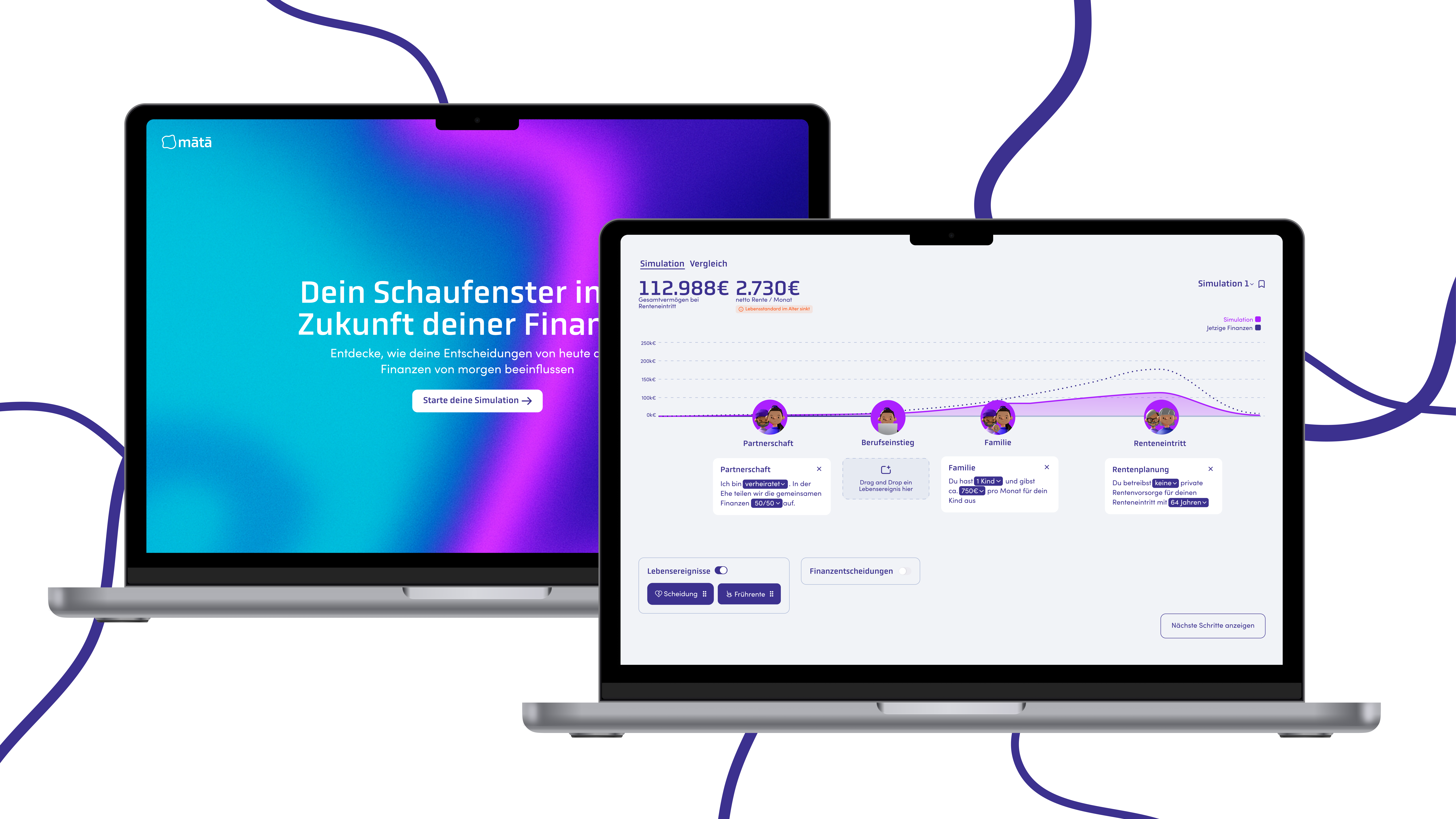 Ein zentrales Element von mātā ist ein interaktiver Simulator, der individuelle Lebensentscheidungen und deren finanzielle Langzeitwirkungen anschaulich darstellt.
