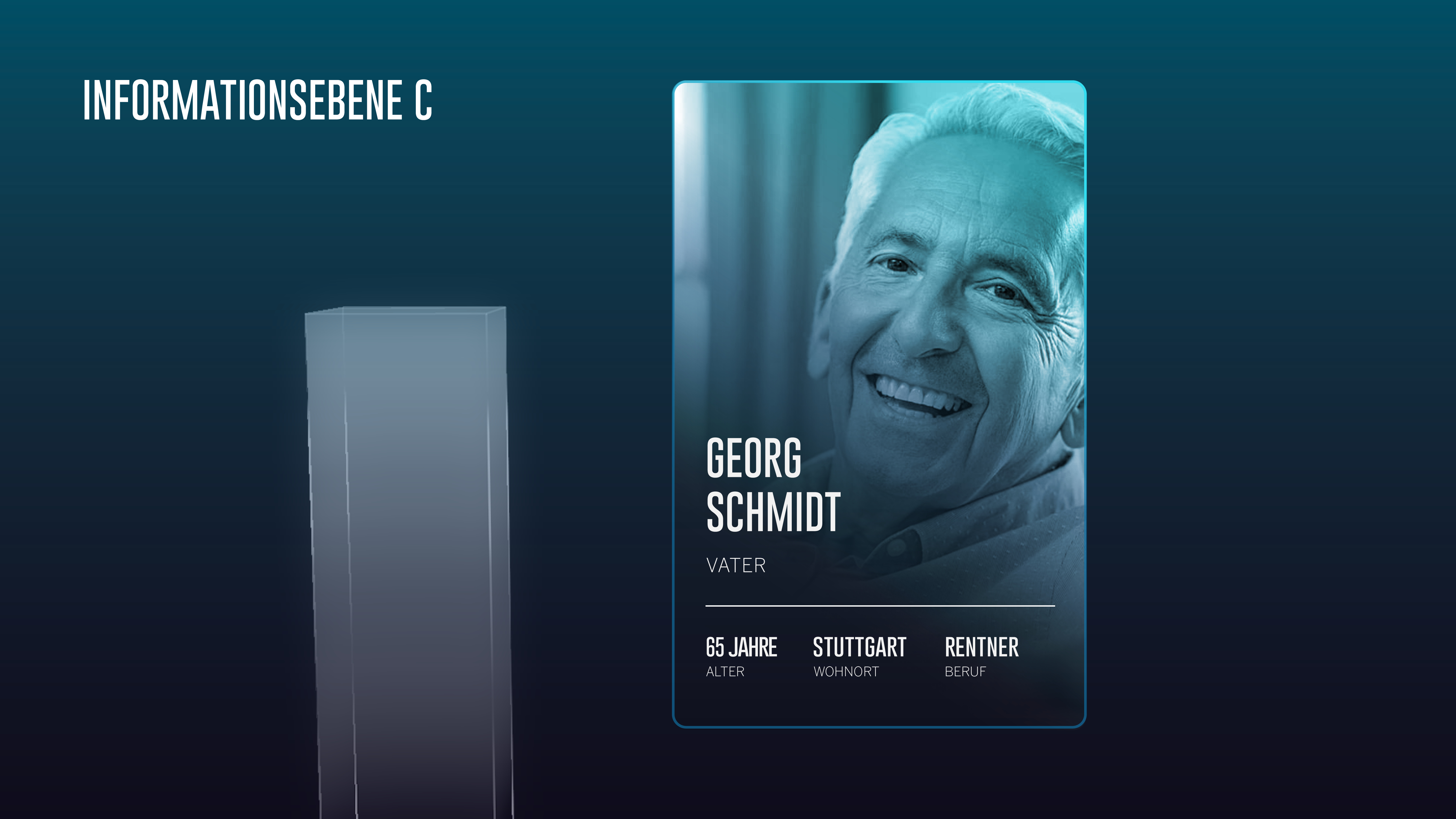 Die dritten Ebene ist die sensibelste Stelle im System. Dahinter verbirgt sich der Datenkern, indem alle digitale Daten ungefiltert gespeichert sind. Nur wer als direkter Erbe des Verstorbenen ausgewählt wurde, kann auf diesen zugreifen. Ebenso befinden sich hier wichtige Informationen, um die Angehörigen nach dem Tod zu entlasten. Darunter können Zugriffsdaten von Social-Media-Plattformen, digitale Bankdaten und Ähnliche fallen. Diese Ebene wird als Avatar der verstorbenen Person wiedergegeben. Dieser steht für das Sinnbild der digitalen Unsterblichkeit. Der Memtower ist das physische Produkt, über welches die Informationsebenen als Hologramm ausgestrahlt werden.