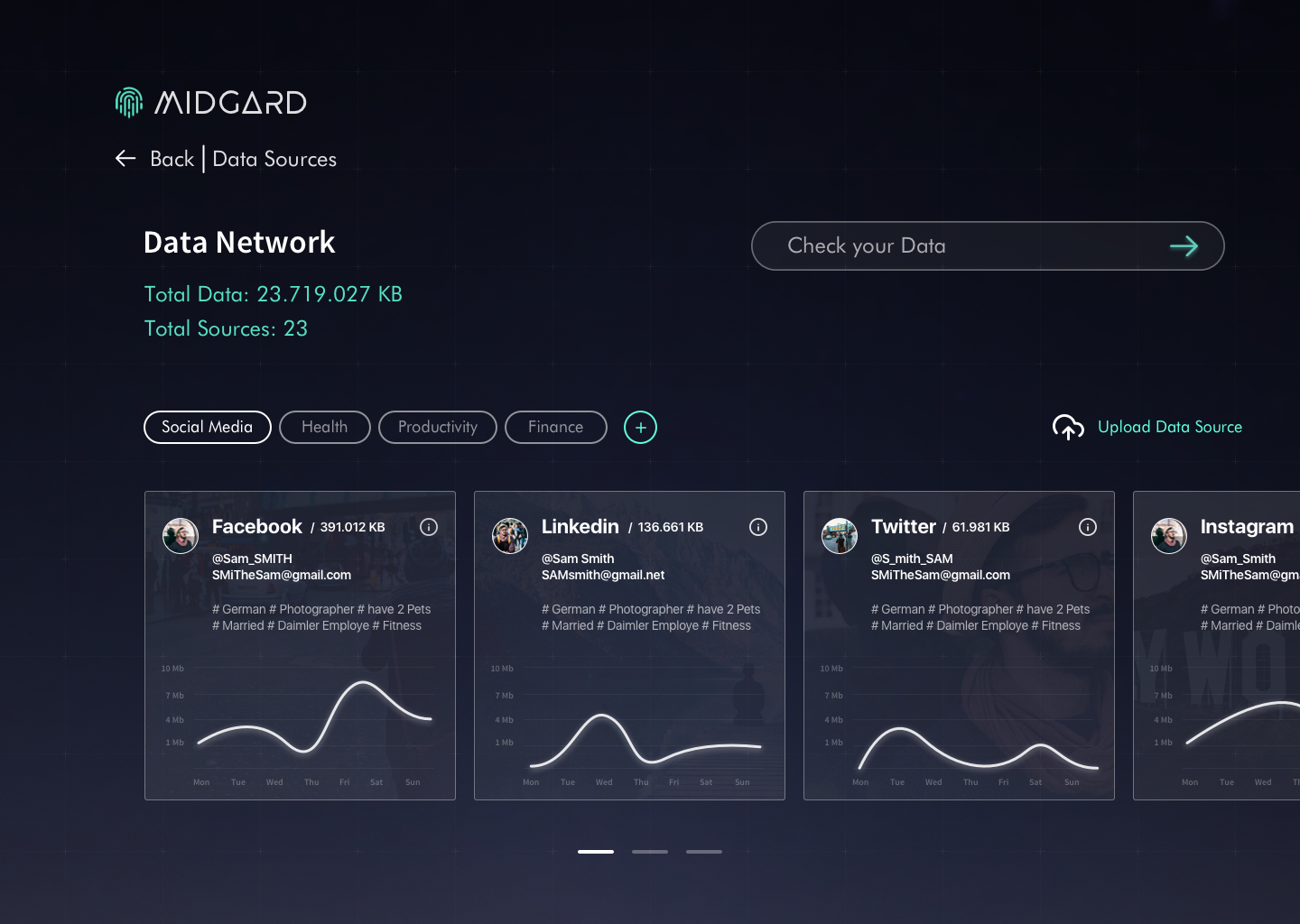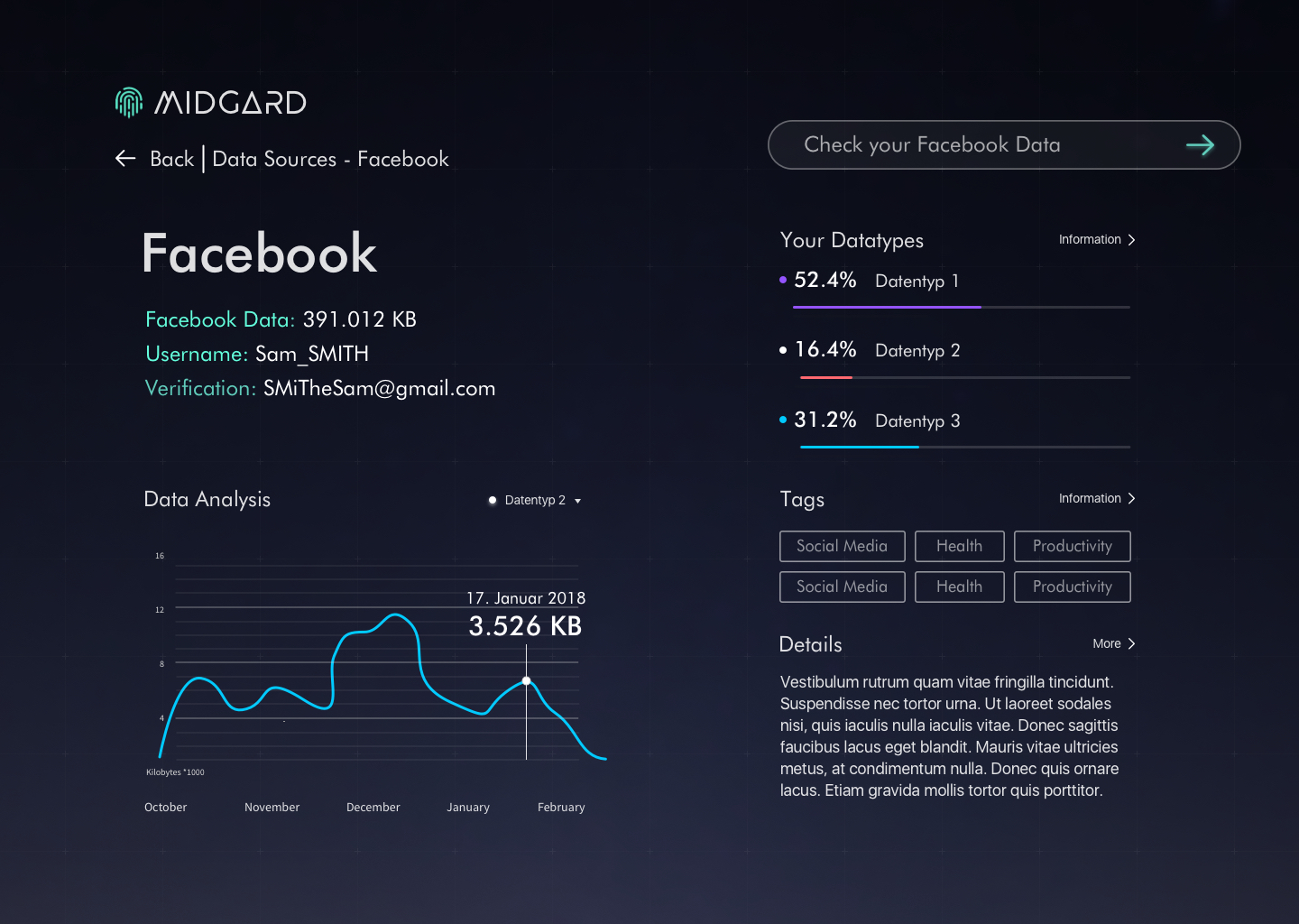 Mit Midgard wird klar, wie unterschiedliche Daten und Quellen miteinander zusammenhängen und für welche Zwecke diese benutzt werden. Somit behält man zu jeder Zeit die volle Kontrolle über seine eigenen Daten. Denn jeder Mensch sollte ein Recht auf den Besitz seiner Daten haben.