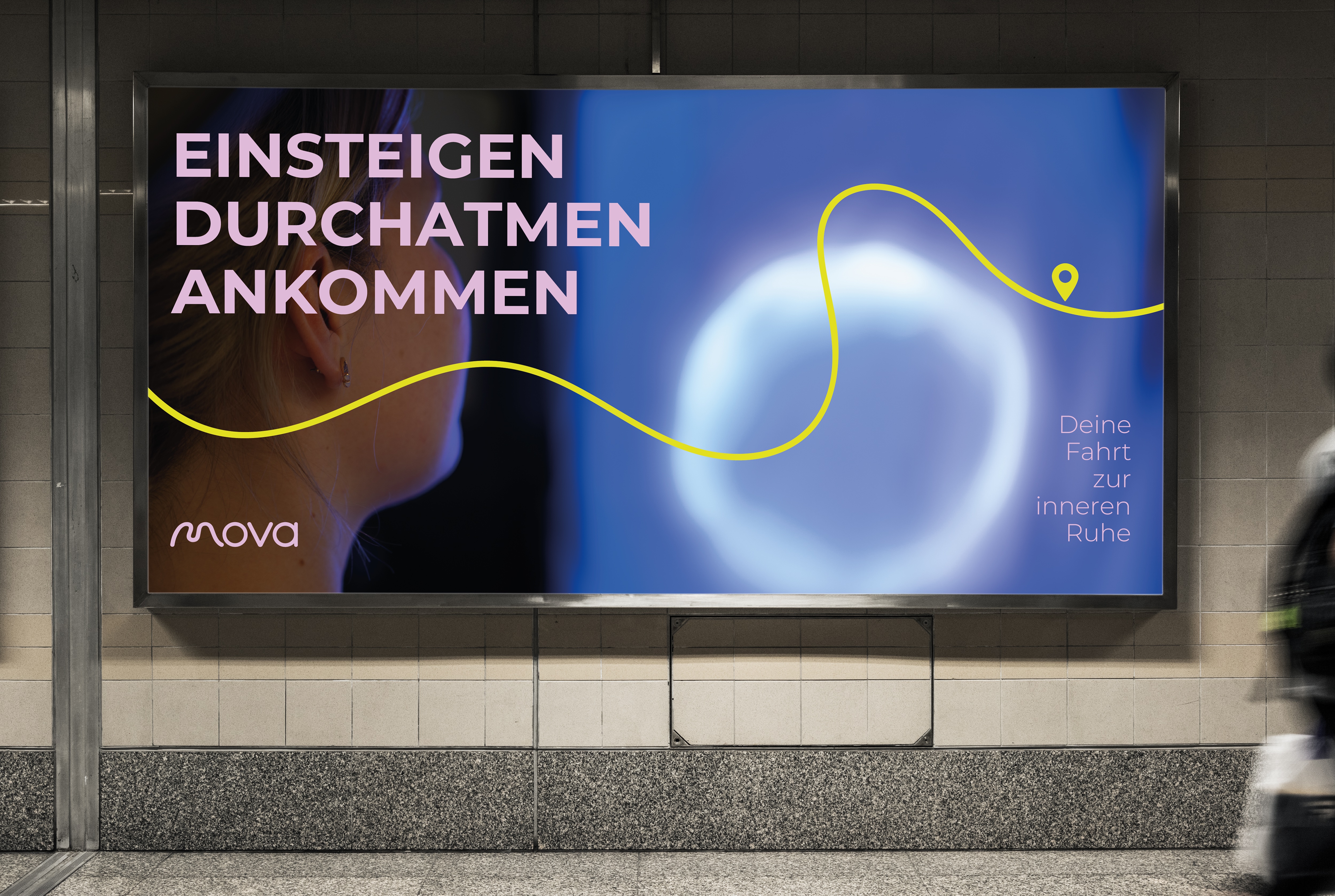 Die Markenkampagne „Mova“ nutzt Out-of-Home-Medien entlang der Customer Journey, insbesondere in Städten auf reichweitenstarken Billboards, sowie Druckmedien wie Sticker und Postkarten. Ziel ist es, die Markenbekanntheit zu stärken und insbesondere unsichere Zielgruppen anzusprechen.