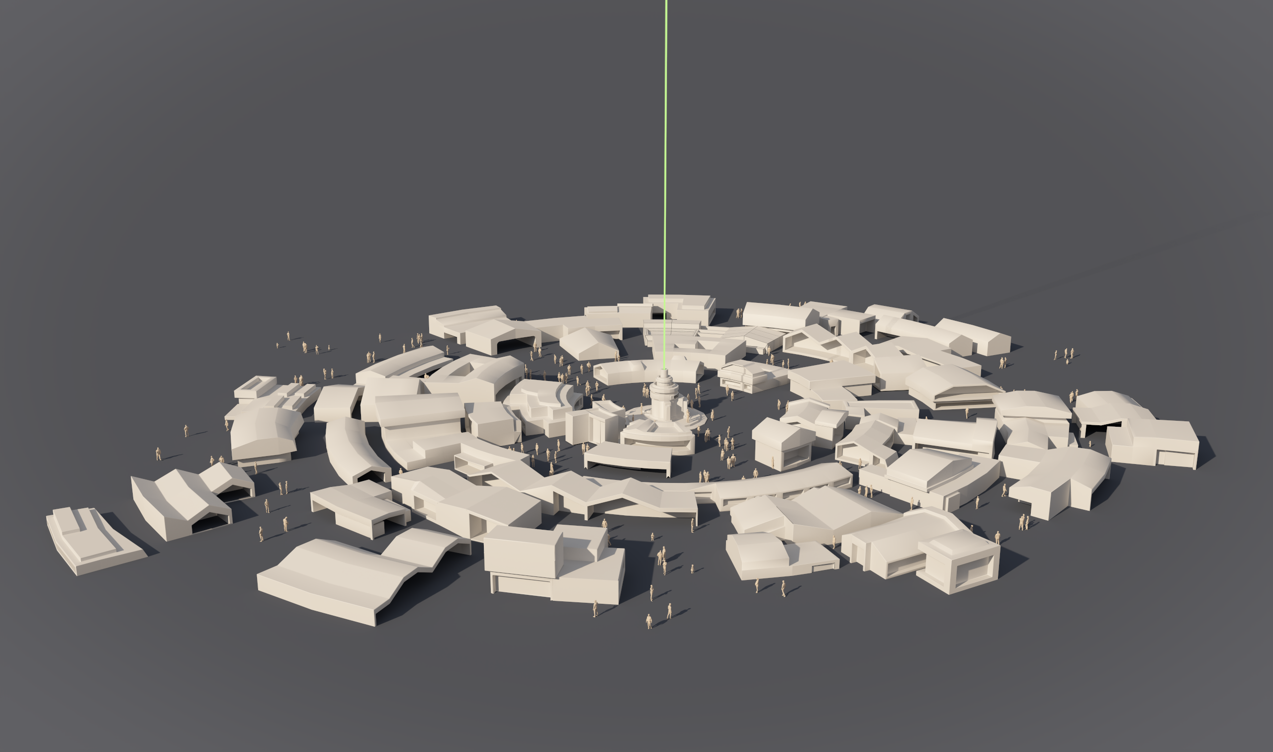 Die multifunktionalen Popup-Städte sind auf das notwendigste reduziert und passen sich individuell der Bevölkerung an. Sie sind darauf ausgelegt sich in kürzester Zeit auf- und abzubauen und sich an geeignete Klimaoasen, also Orte an denen das Klima menschliches Leben zulässt, zu transportieren. Es entsteht eine Kreislaufwirtschaft des Teilens innerhalb der Städte. Nachhaltig, autark und auf erneuerbare Energien ausgelegt.
