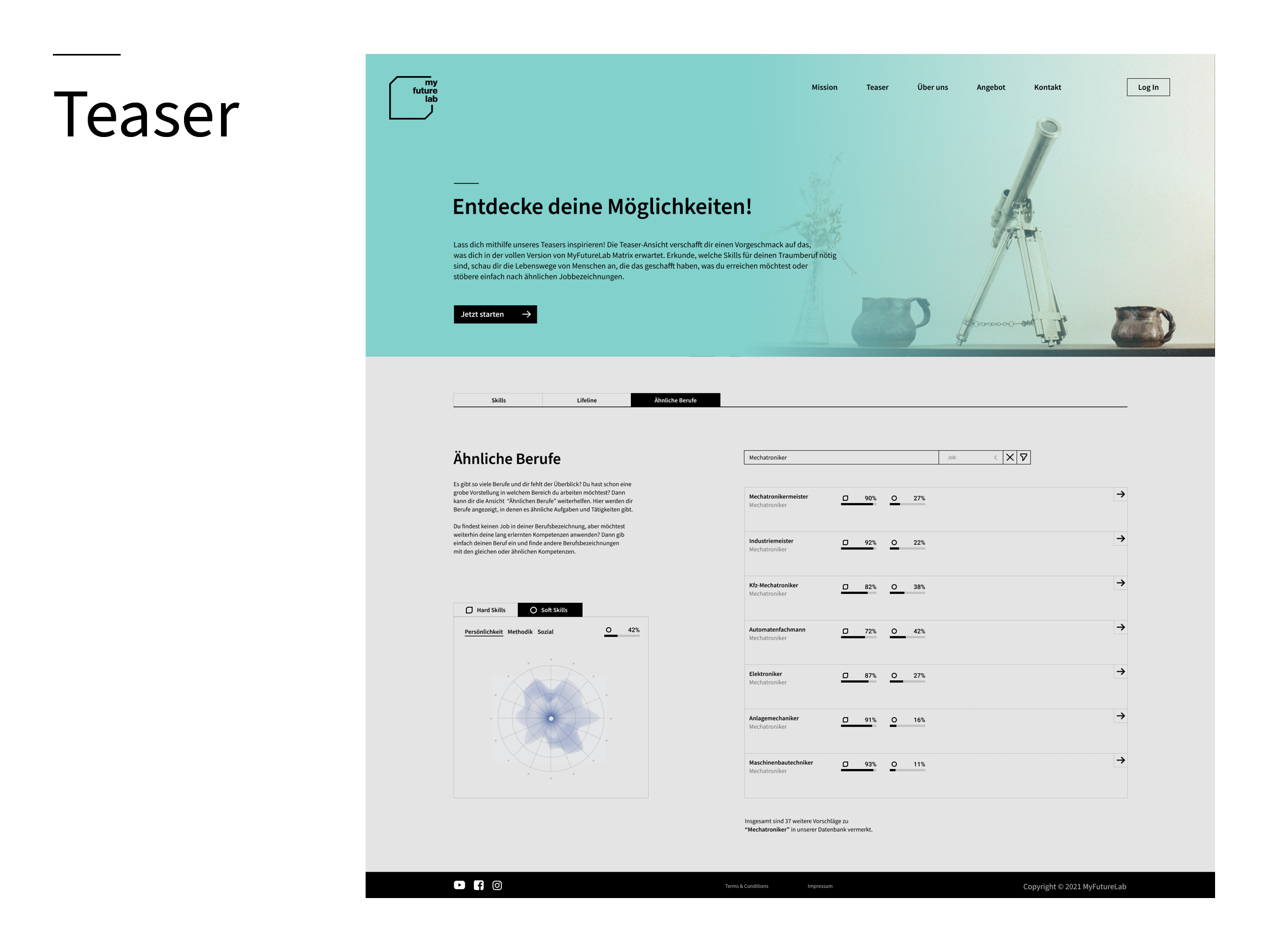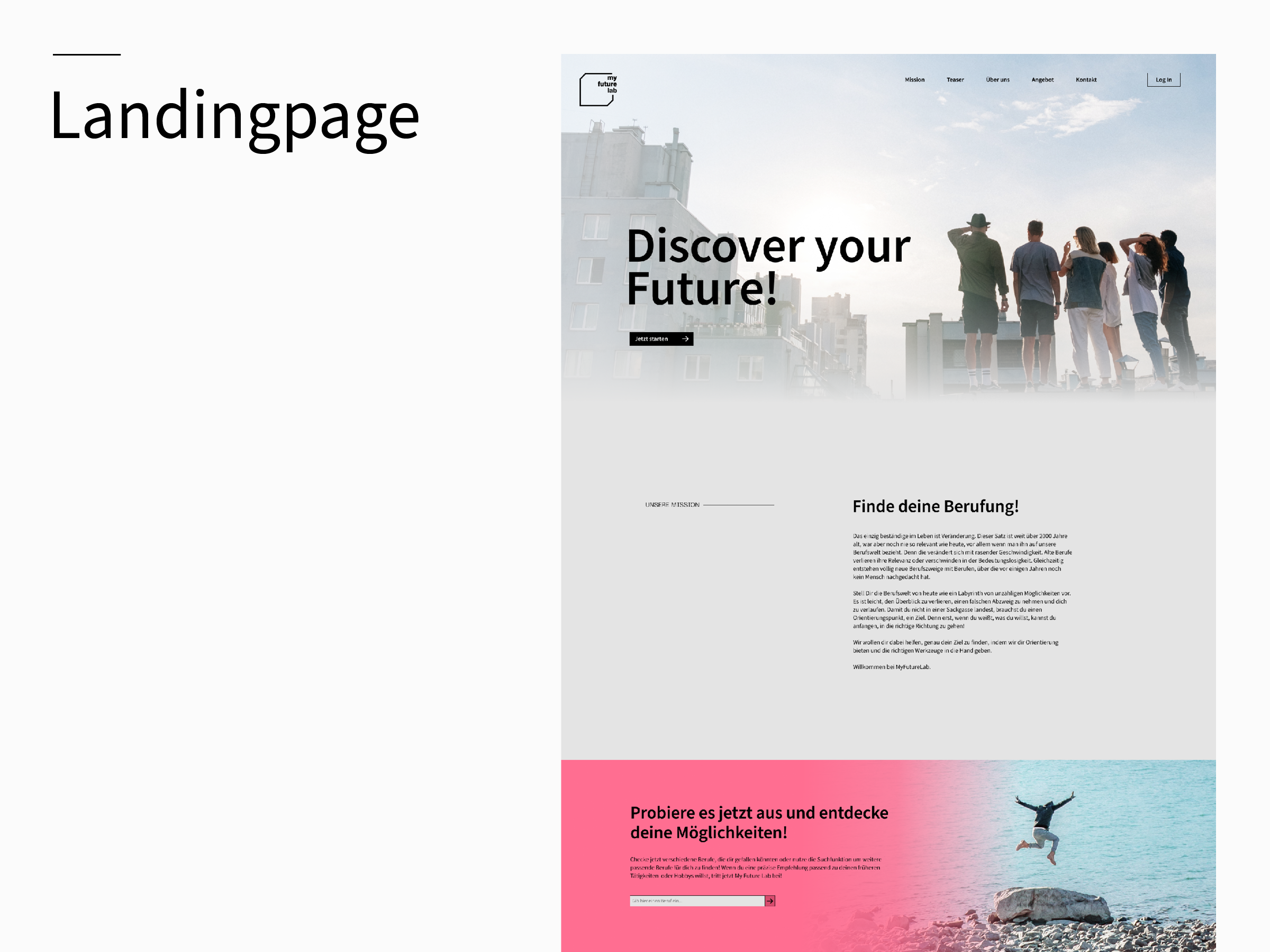 Auf der Landingpage erhalten die Besucher:innen allgemeine Informationen zu MyFutureLab und erfahren, welche Mission sich hinter der Marke verbirgt.