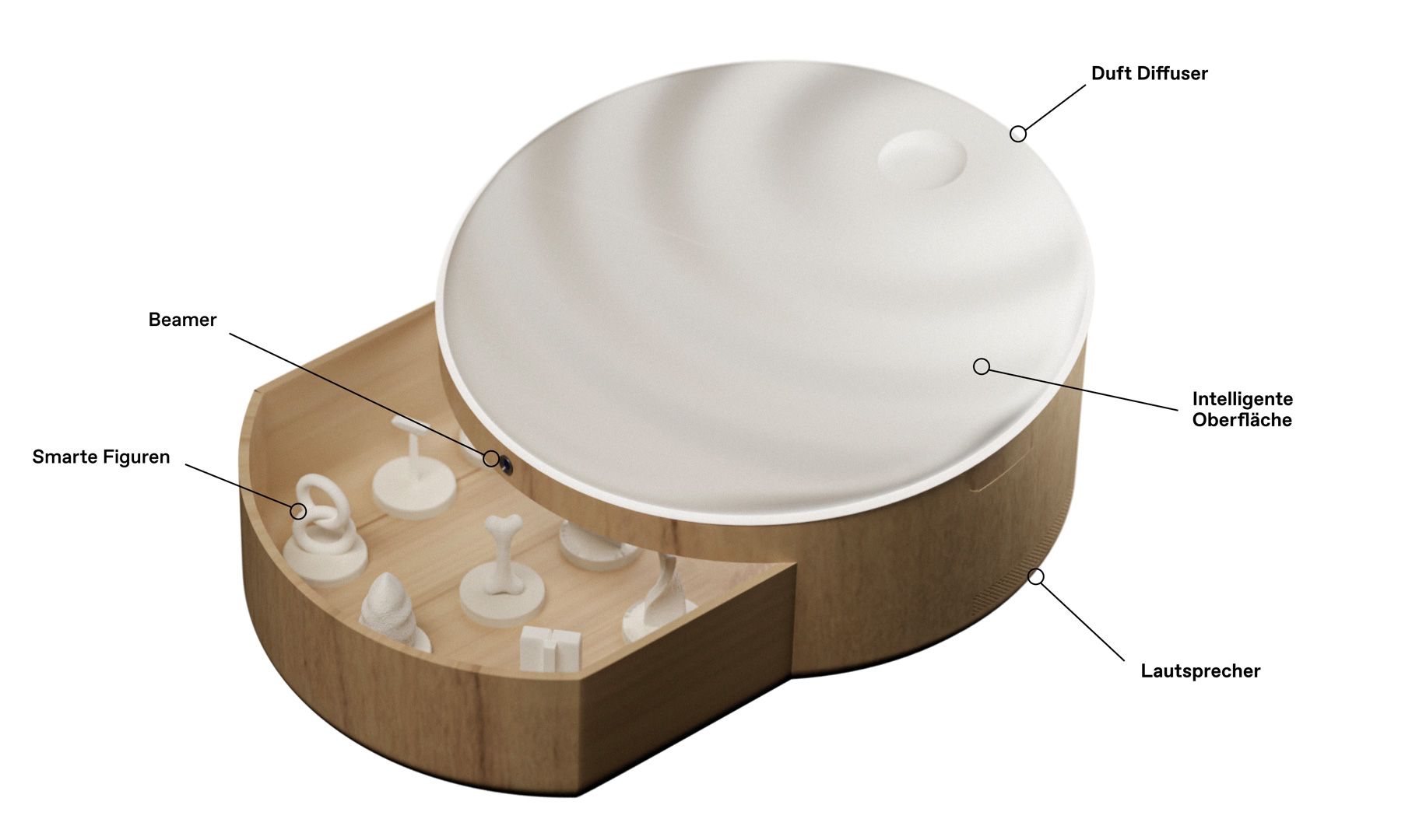 Diese umfassen einen Tischbeamer und Lautsprecher, die genutzt werden können, um persönliche Videos, Fotos oder die eigenen Lieblingslieder wiederzugeben.