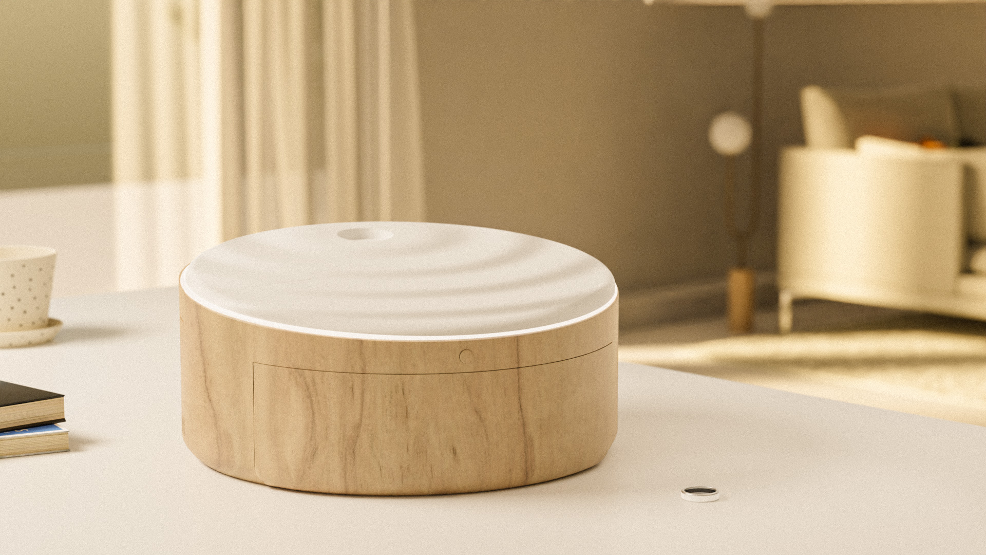 Eine smarte Ambientebeleuchtung erzeugt bei der Medienwiedergabe eine angenehme Stimmung und unterstützt so das Erinnern. Außerdem kann die Beleuchtung den Patienten helfen, sich zu entspannen. Viele Erinnerungen werden aber nicht durch Bilder, sondern durch Gerüche zum Leben erweckt. Deshalb enthält die Box zusätzlich einen Diffuser. Mit Hilfe verschiedener Duftkartuschen können so ganzheitliche Erlebniswelten kreiert werden.