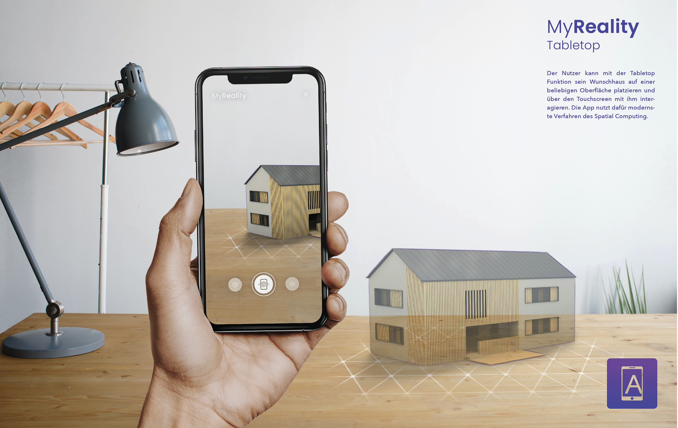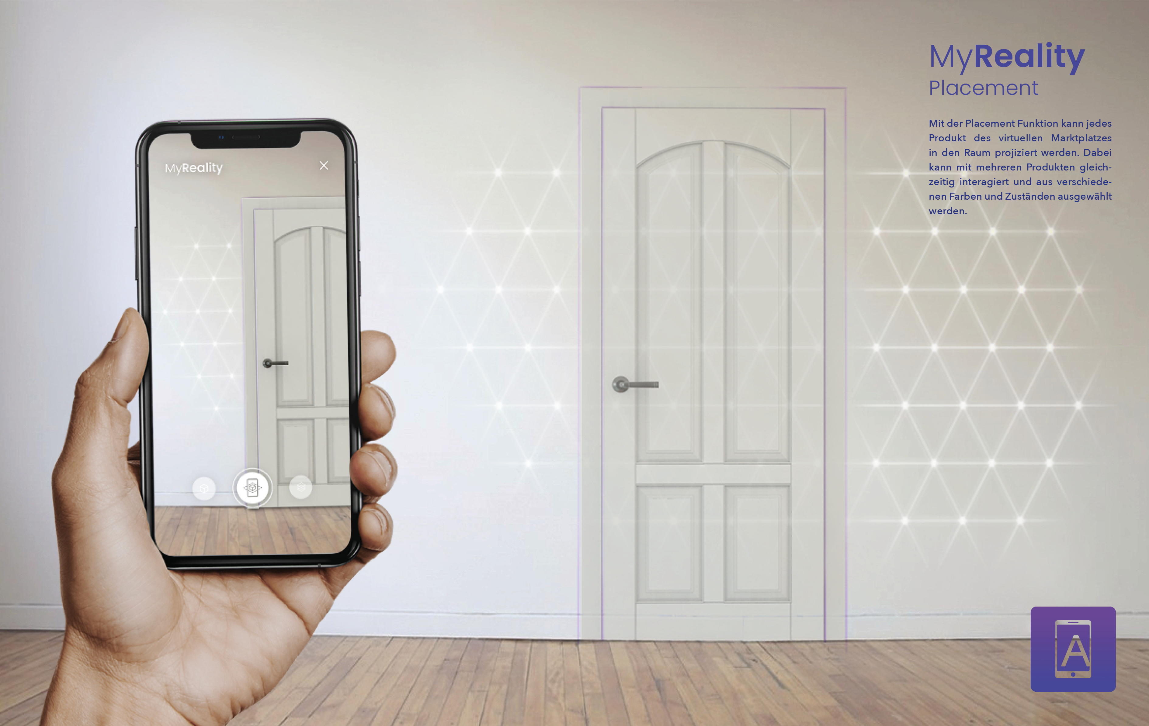 MyReality Placement | Mit MyReality Placement können die Produkte aus dem virtuellen Marktplatz in Lebensgröße in die Umgebung projiziert und miteinander verglichen werden. Dabei kann der Nutzer aus verschiedenen Farbmustern, Oberflächen oder Funktionszuständen auswählen. Beispielsweise kann ein Fenster im geöffneten oder im geschlossenen Zustand begutachtet werden. Dem Nutzer wird somit ermöglicht, Produkte von zu Hause aus zu erproben, bevor eine Kaufentscheidung getroffen wird.