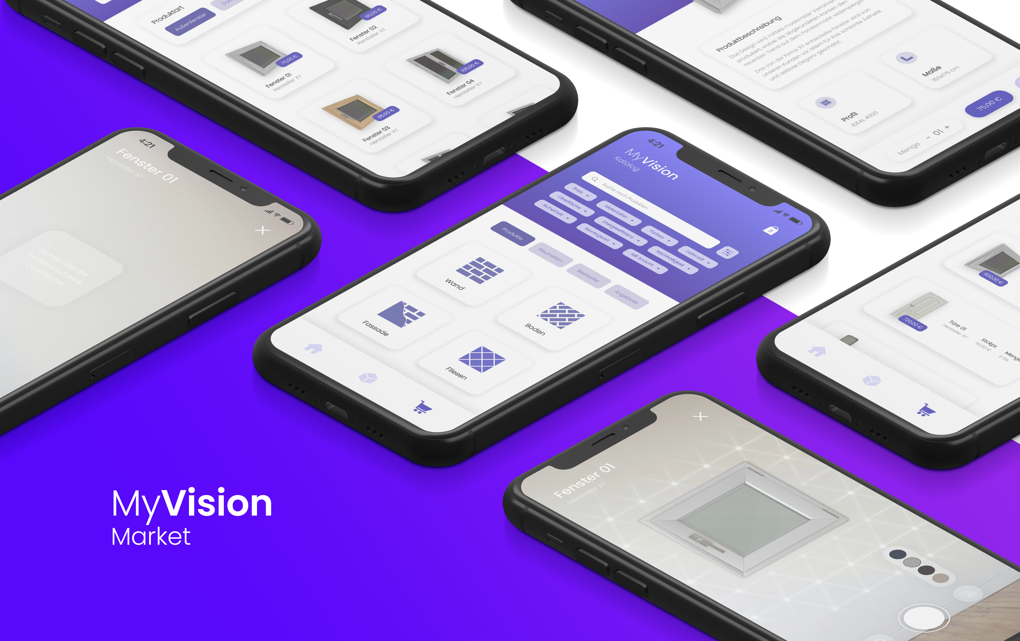 MyVision Market | Zudem bietet Die App einen virtuellen Marktplatz, in welchem BauherrInnen Produkte angeboten werden, die sich für den dauerhaften Einbau in ihre Immobilie eignen. Beispiele hierfür sind Treppen, Fenster oder Türen. Die App dient als freier Marktplatz, in welchem jedem Hersteller von Bau-relevanten Produkten die Möglichkeit gegeben wird, ein Produktsortiment anzubieten. Wenn der Nutzer sich für ein Produkt entscheidet, wird er auf die Seite des Herstellers weitergeleitet.
