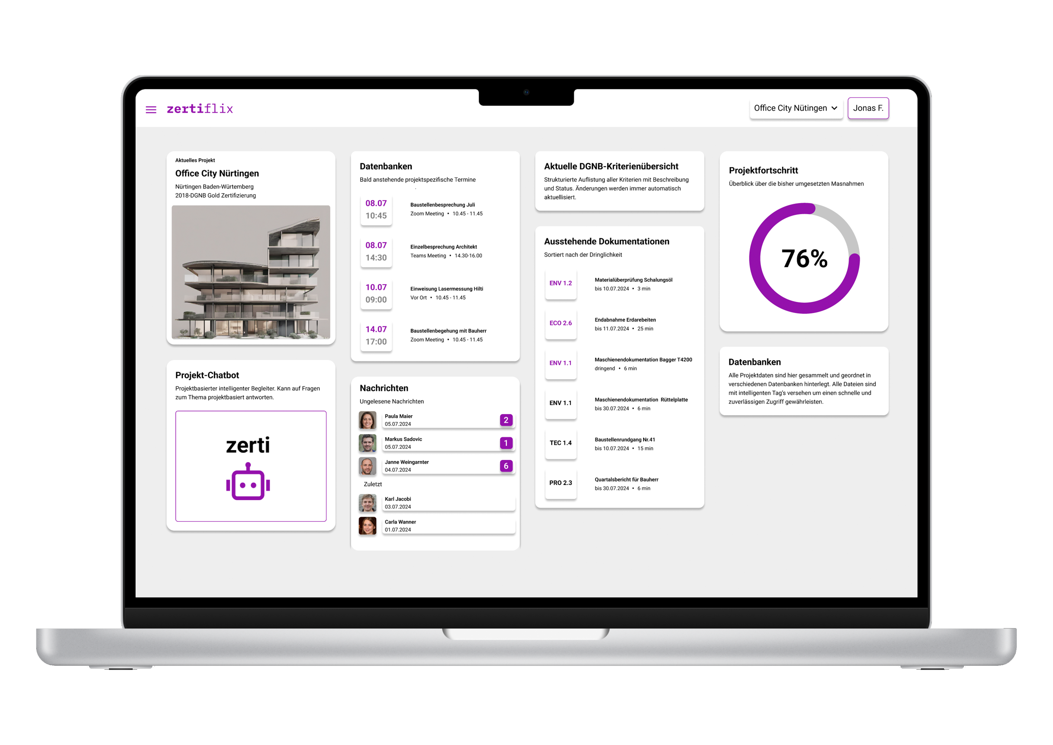 Mein Konzept zertiflix ist eine KI-gestützte Zertifizierungssoftware für die Zertifizierung nachhaltiger Gebäude.