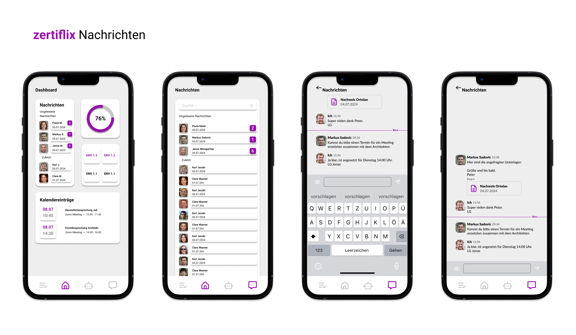 Auch der gesamte Nachrichten und Datentransfer bezüglich des Projektes wird in der software ermöglicht, sodass Datenverluste beim Übertragen vermieden werden.