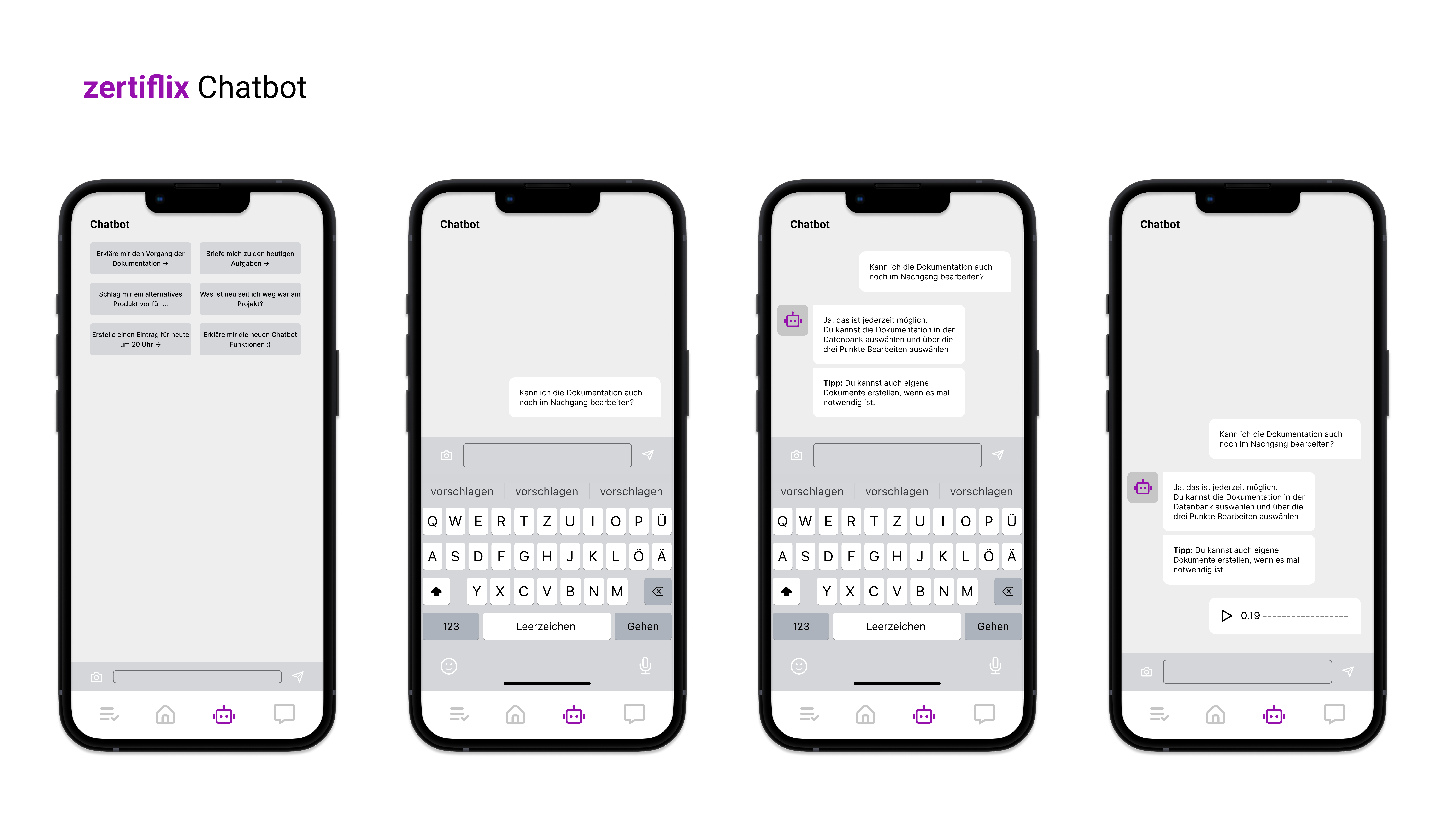 Ebenfalls kann zu jedem Zeitpunkt der projekteigene Chatbot konsultiert werden, welcher auch auf projektspezifische Inhalte eingehen kann.