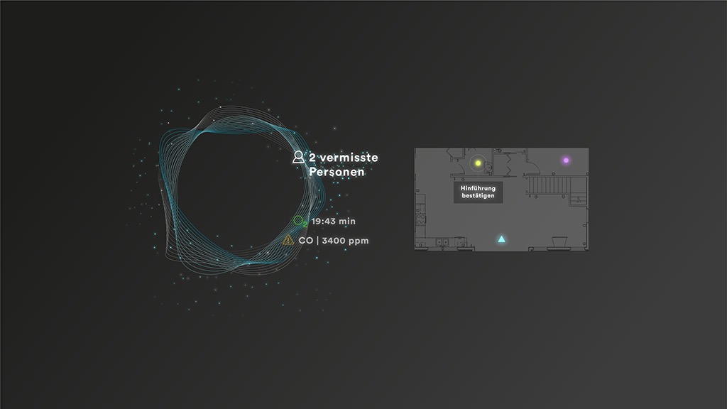 Im Rahmen dieses Projekts wurde der Use Case des Rettungseinsatzes der Feuerwehr unter¬sucht und das Produkt „Quantum“ entwickelt. Es besteht aus einem Sensoren-Port, der Umgebungsinformationen aufnimmt, verarbeitet und an den Chip, der am Sehnerv des Trägers sitzt, kommuniziert. Der Nutzer nimmt seine Umgebung durch Augmented Reality (AR) Visualisierung erweitert wahr. Mit einem virtuellen Bedienelement, genannt „Q”, wird der Nutzer im Einsatz begleitet und kann Informationen wie z.B. die Sauerstoffsättigung ablesen. Zudem wird über das Bedienelement das erweiterte Sehen gesteuert.