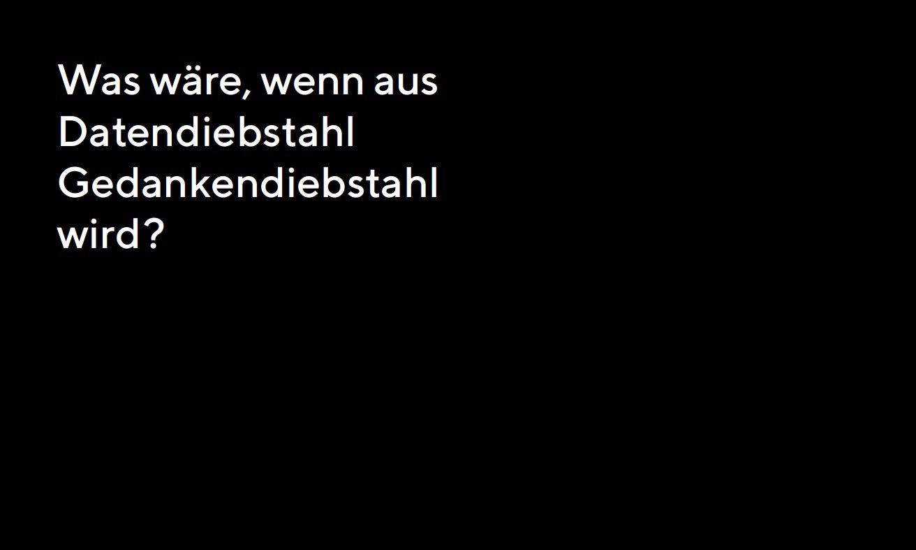 Um digitale Sicherheit zu ermöglichen, ist es unerlässlich, die Entwicklung der Technik kontinuierlich zu bewerten. Der Wandel von einer auditiven zu einer gedankenbasierten Kommunikation schafft ein Fundament, dass bei einer unkontrollierten Entwicklung ein neues Level des Missbrauches erreichen kann. Die Vorstellung, dass ein Dritter aktiv auf die eigenen Gedanken Zugriff erhalten kann, ist schon lange ein weitverbreitetes Szenario in Medien und Literatur. Der aktuelle Stand der Forschung könnte diese Vorstellungen in naher Zukunft Wirklichkeit werden lassen und lässt folgende Frage offen: Was wäre, wenn aus Datendiebstahl Gedankendiebstahl wird?