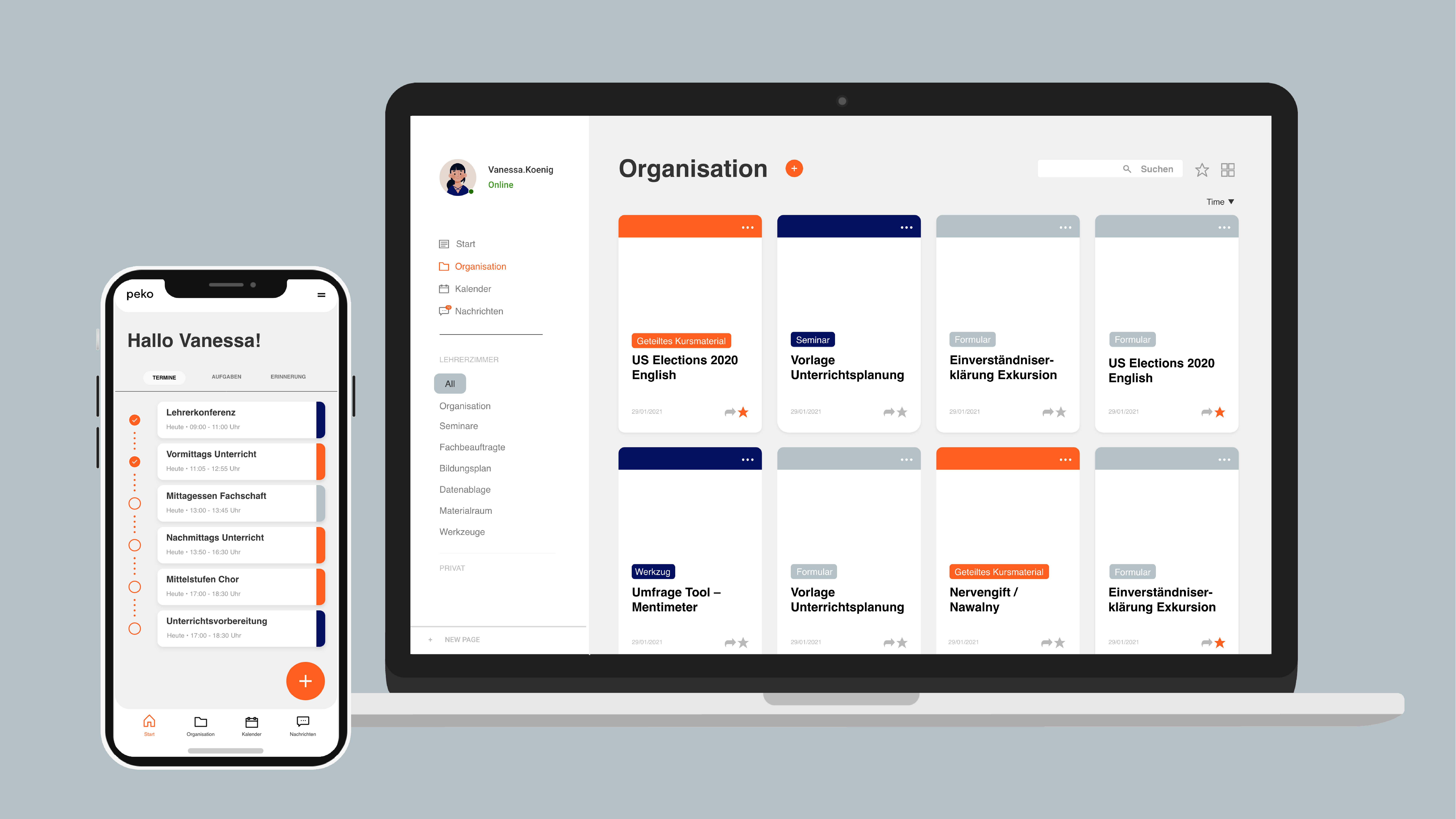 Im ersten Schritt werden die Schulen durch die Peko App begleitet. Durch sie kann im Alltag der Lehrenden Zeit eingespart werden, da alltäglichen Prozesse digitalisiert und dadurch vereinfacht werden. Die App besteht aus fünf Basisfunktionen und kann je nach Bedarf durch verschiedene Zusatzfunktionen individuell erweitert werden. Die Schulen können also selbst das Ausmaß der Digitalisierung bestimmen, damit ihnen der digitale Einstieg leichter fällt.
