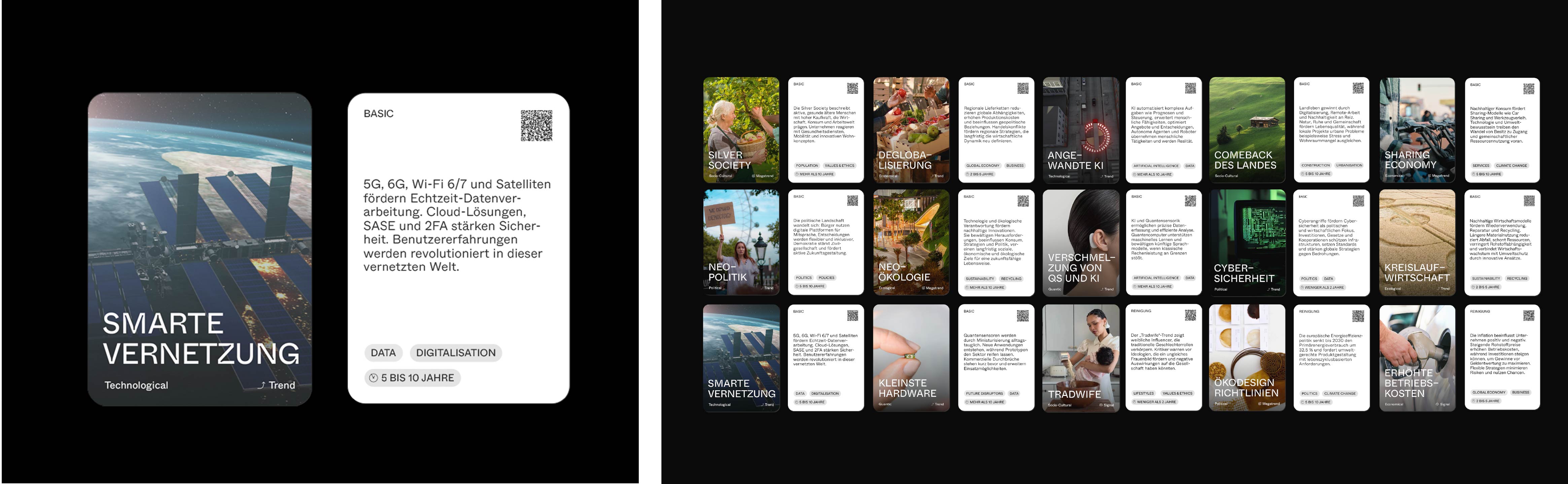 Sie kombinieren allgemeine Zukunftstrends (Social, Political, Economical, Ecological, Technical) mit quantenspezifischen Entwicklungen. Neben einem Basis-Set sind auch branchenspezifische Sets enthalten, die eine gezielte Anwendung ermöglichen.
