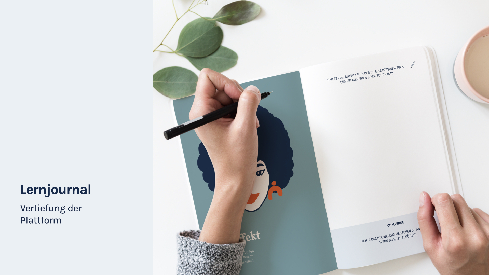 Das Lernjournal stellt eine analoge Ergänzung der reflekt.Plattform dar. Dabei wird sowohl das Wissen vertieft als auch die eigene Selbstreflexion und Sensibilisierung trainiert.