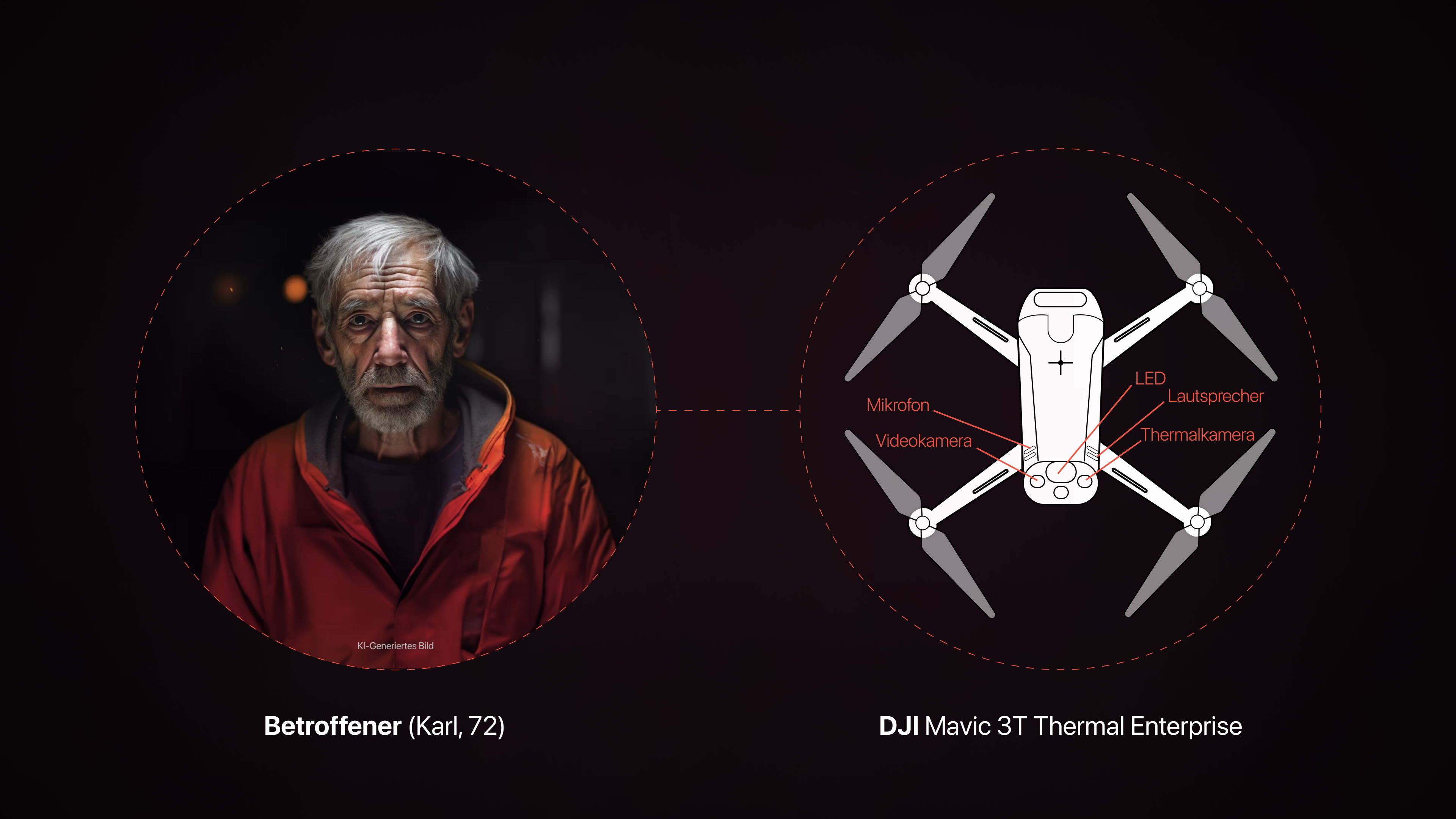Die DJI Drohnen unterstützten nicht nur zu Beginn des Szenarios mit Evakuierungsmaßnahmen durch Durchsagen und Signaltöne, sondern auch im weiteren Verlauf der Katastrophe. Sie nutzen künstliche Intelligenz und Wärmebildkameras, um Betroffene im Gefahrengebiet zu identifizieren. Mikrofone sowie Lautsprecher, um eine direkte Kommunikation mit ihnen zu ermöglichen.
