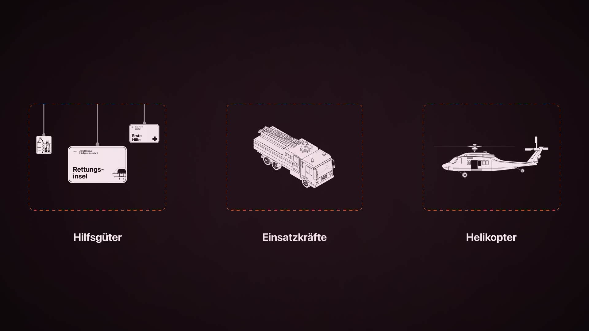 Dank der präzisen Identifizierungsfunktion von ARIA ist es möglich, Personen wie Karl in Gefahrensituationen wie bspw. auf seinem brüchigen Balkon zu erkennen und ihm Hilfe zur Selbsthilfe zu bieten. Die Drohne zeigt ihm nun Evakuierungsrouten auf, liefert wichtige Informationen und vermittelt ein Gefühl der Sicherheit.