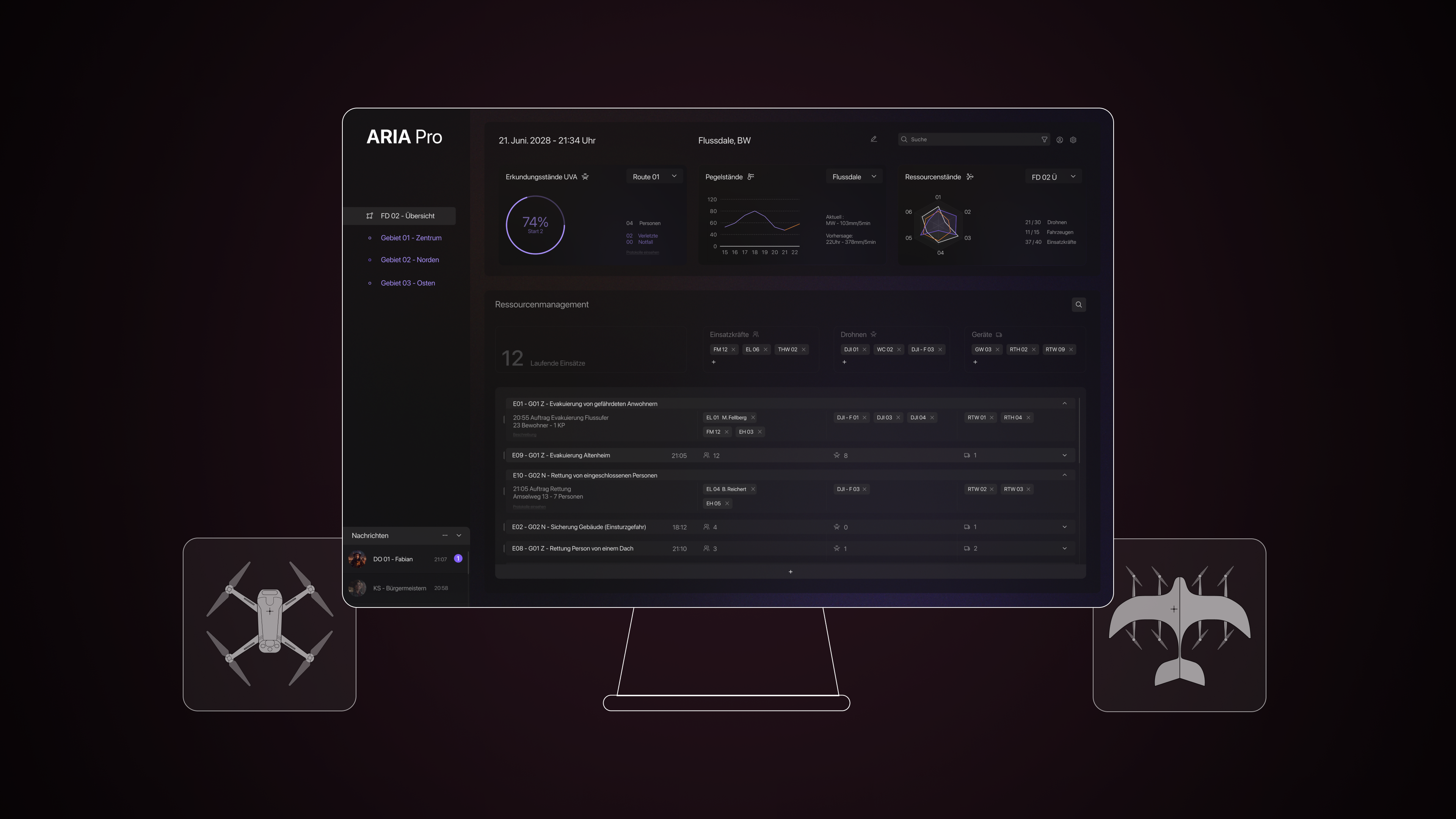 Die Software optimiert das Ressourcenmanagement und Organisation im Einsatzgebiet, indem sie Informationen über verfügbare Einsatzkräfte, Geräte, Drohnen und andere Ressourcen zentralisiert verwaltet. Ebenso können Gemeinden individuelle ortsbezogene Informationen wie kritische Objekte oder stark gefährdete Personen im Vorfeld in das System einpflegen, die von ARIA berücksichtigt werden. Dadurch können Engpässe vermieden sowie eine optimale Planung, Koordination und Nutzung der Ressourcen gewährleistet werden.