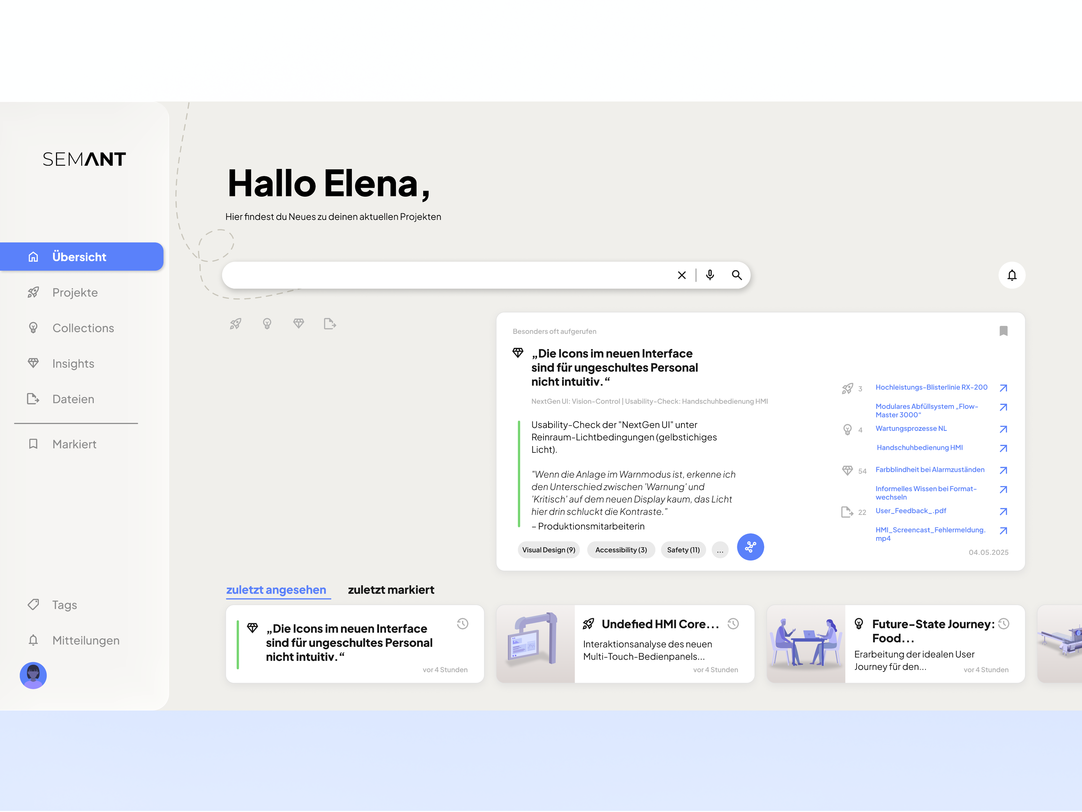 Letztlich löst SEMANT die Grenzen zwischen den Abteilungen auf. Es macht UX-Research zu einem aktiven Treiber der Produktentwicklung – für eine effizientere, nutzerzentrierte Zukunft, in der das kollektive Wissen für jeden im Unternehmen jederzeit greifbar ist.