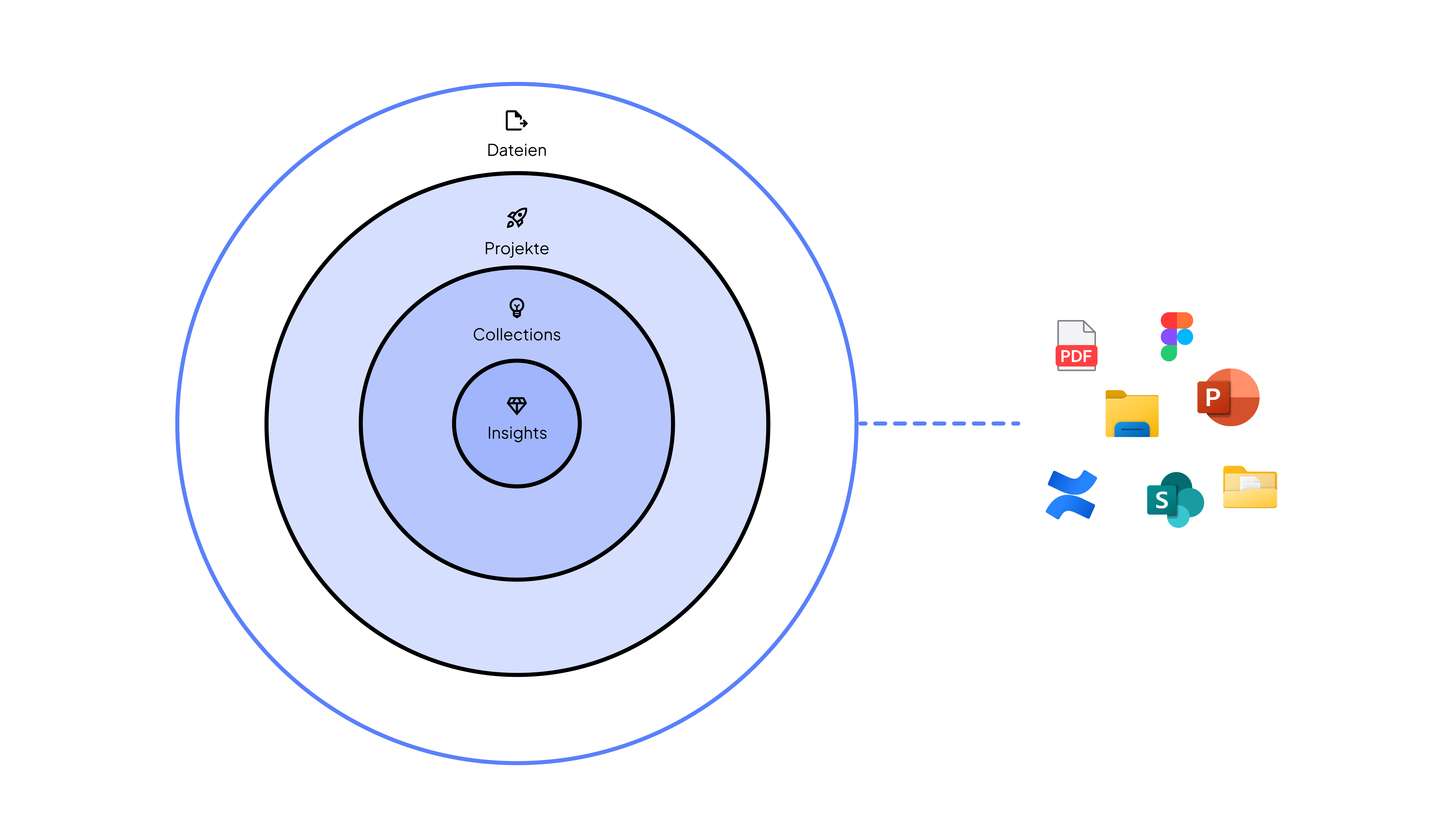 Man verbindet Dateien mit Projekten, sortiert nach Collections und gewinnt Insights.